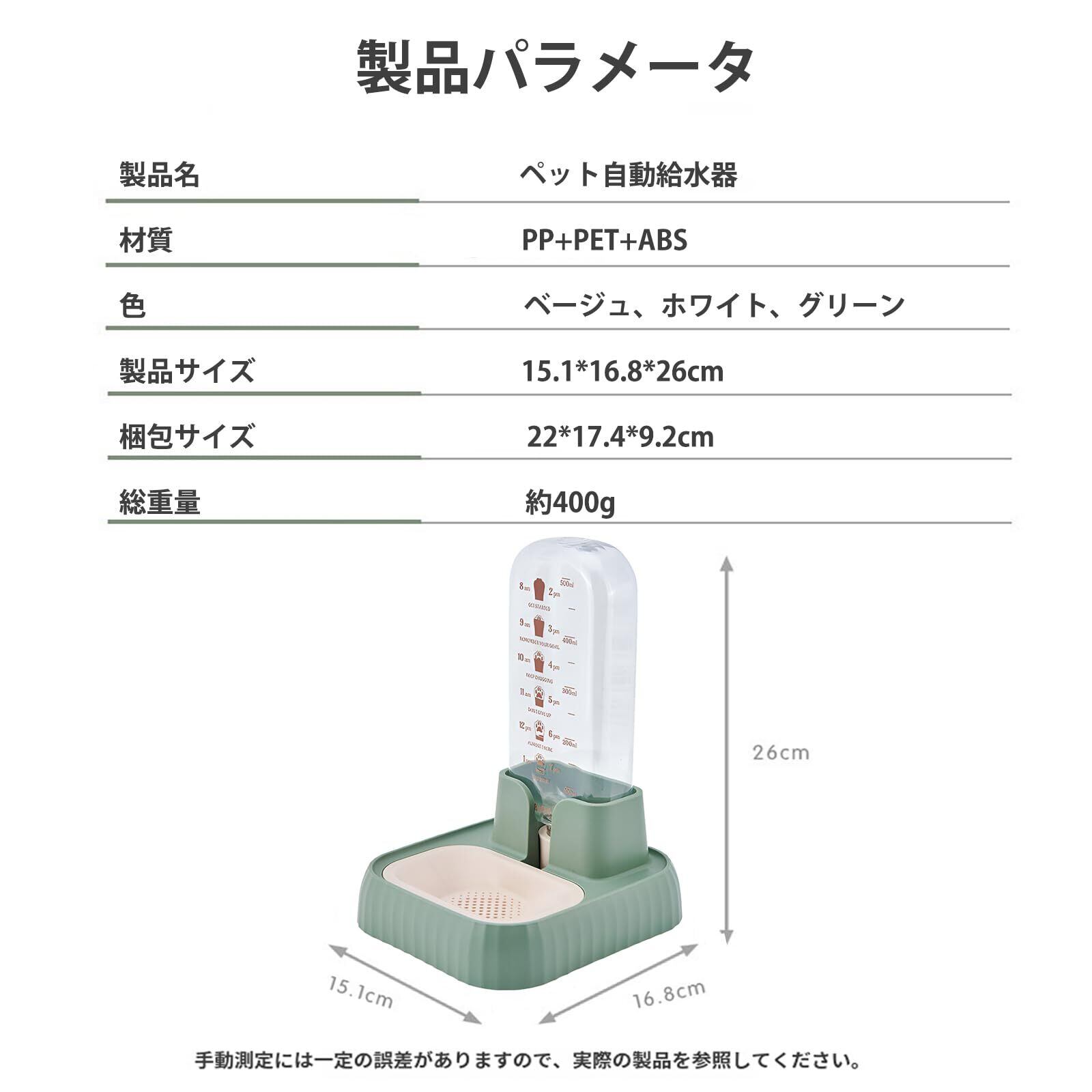 520ml ペット給水器 猫犬水飲み器 ペットボトル自動水飲み皿 みずのみ器 スタンド固定浄水器 循環式 大容量飲料ボウル スケール付き 犬猫用 電源不要 プラスチックペット用品 短期出張 熱中症を防ぐ (ホワイト, 520ml)