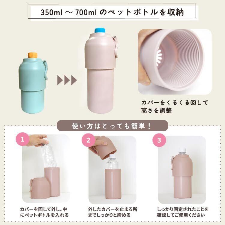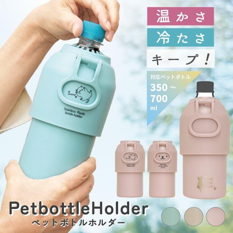 [アリビオ]保冷 保温 ペットボトルホルダー 真空断熱 二重ステンレス ペットボトルカバー ねこ 白クマ (ネコ1匹,グレー/くすみベージュ)