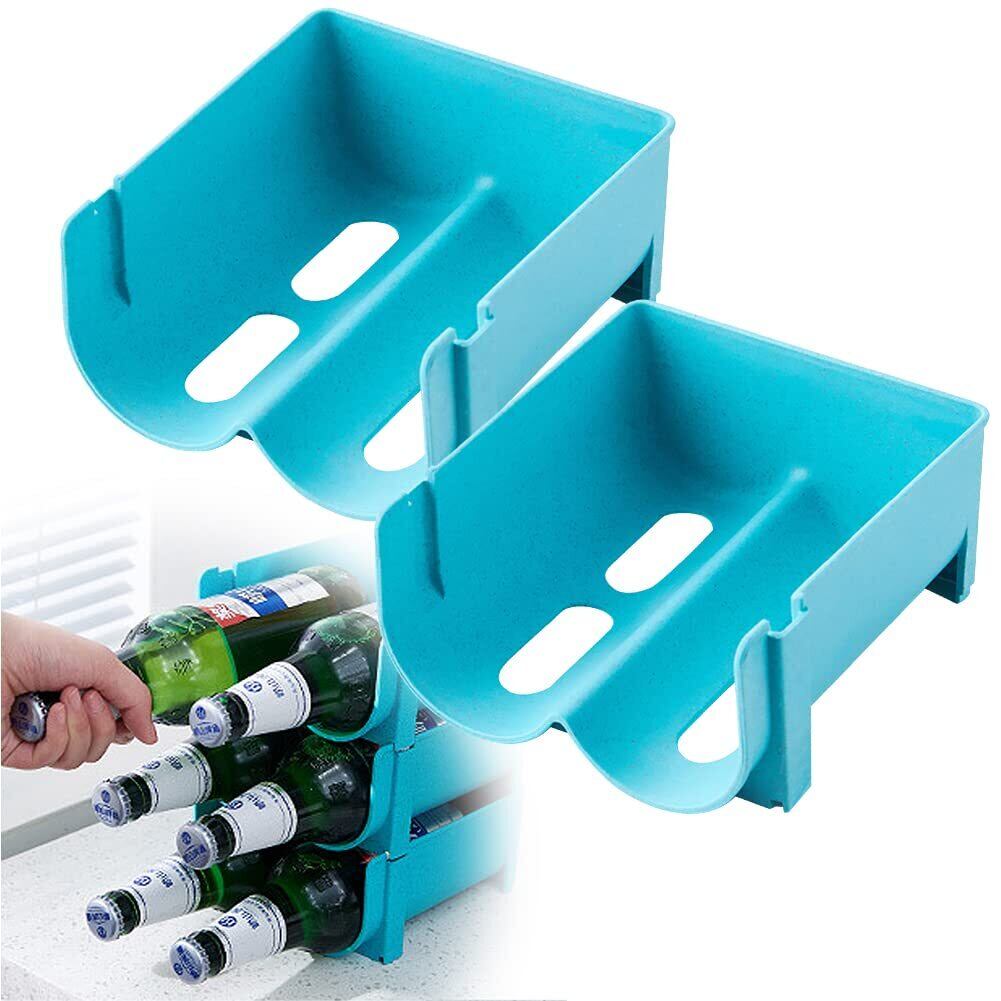 ドリンクホルダー ペットボトル 収納 冷蔵庫 整理 スッキリ デッドスペース 活用 キッチン 台所 (ブルー)