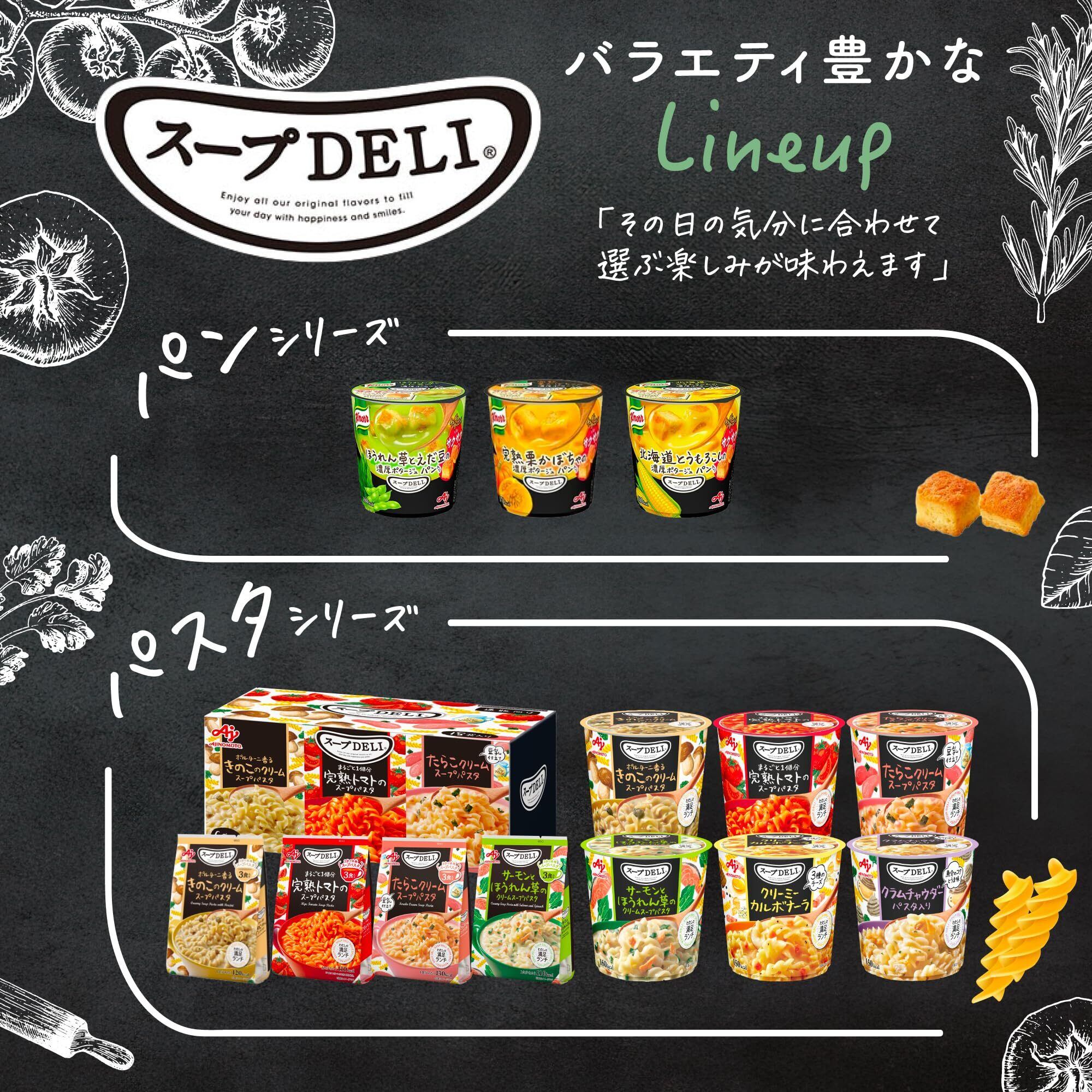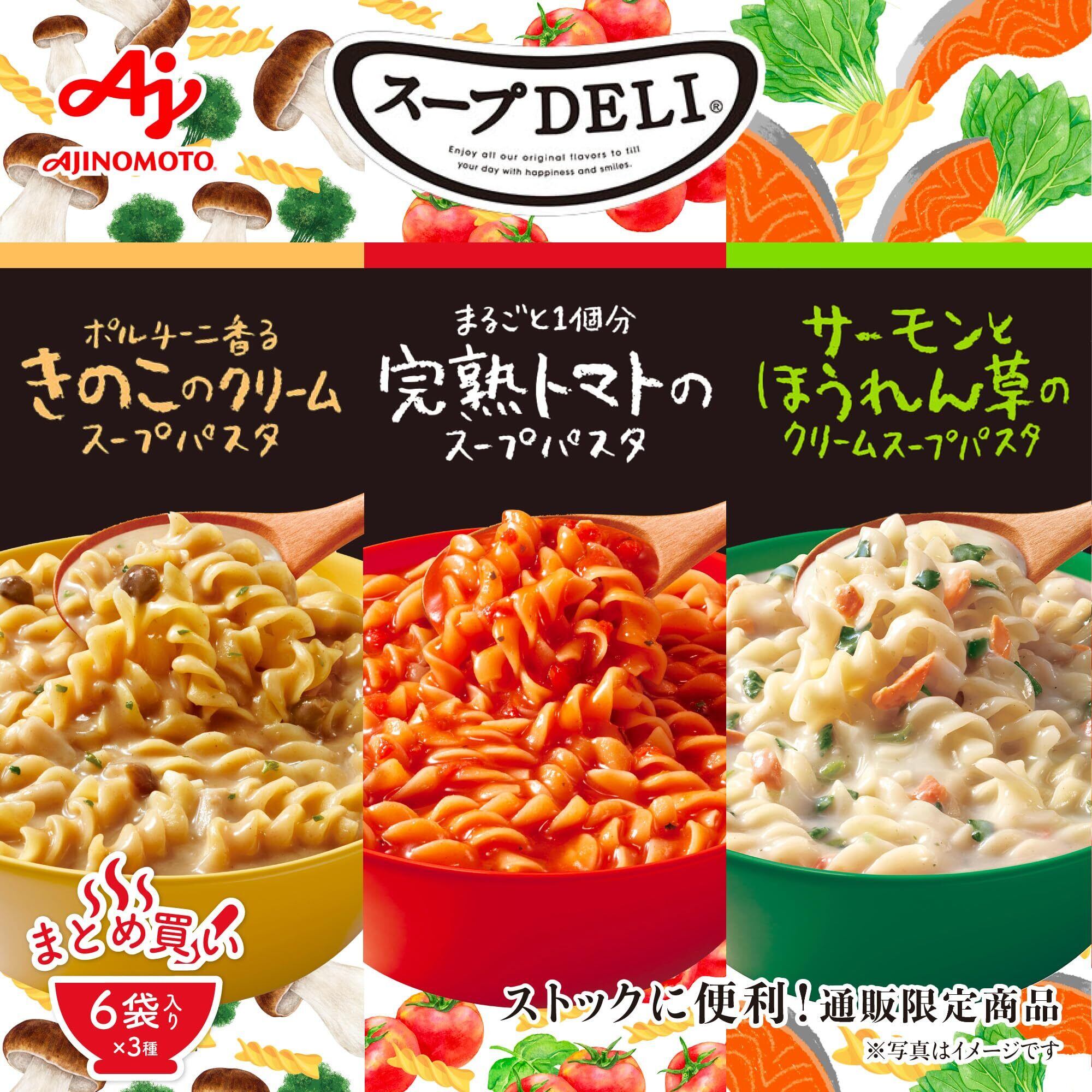 Ajinomoto 味の素 スープDELI 3種 バラエティ 18食セット トマト/きのこ/ほうれん草 スープデリ 野菜スープ 詰め合わせ クリーム スープパスタ 大容量 非常食 即席 スープ インスタント