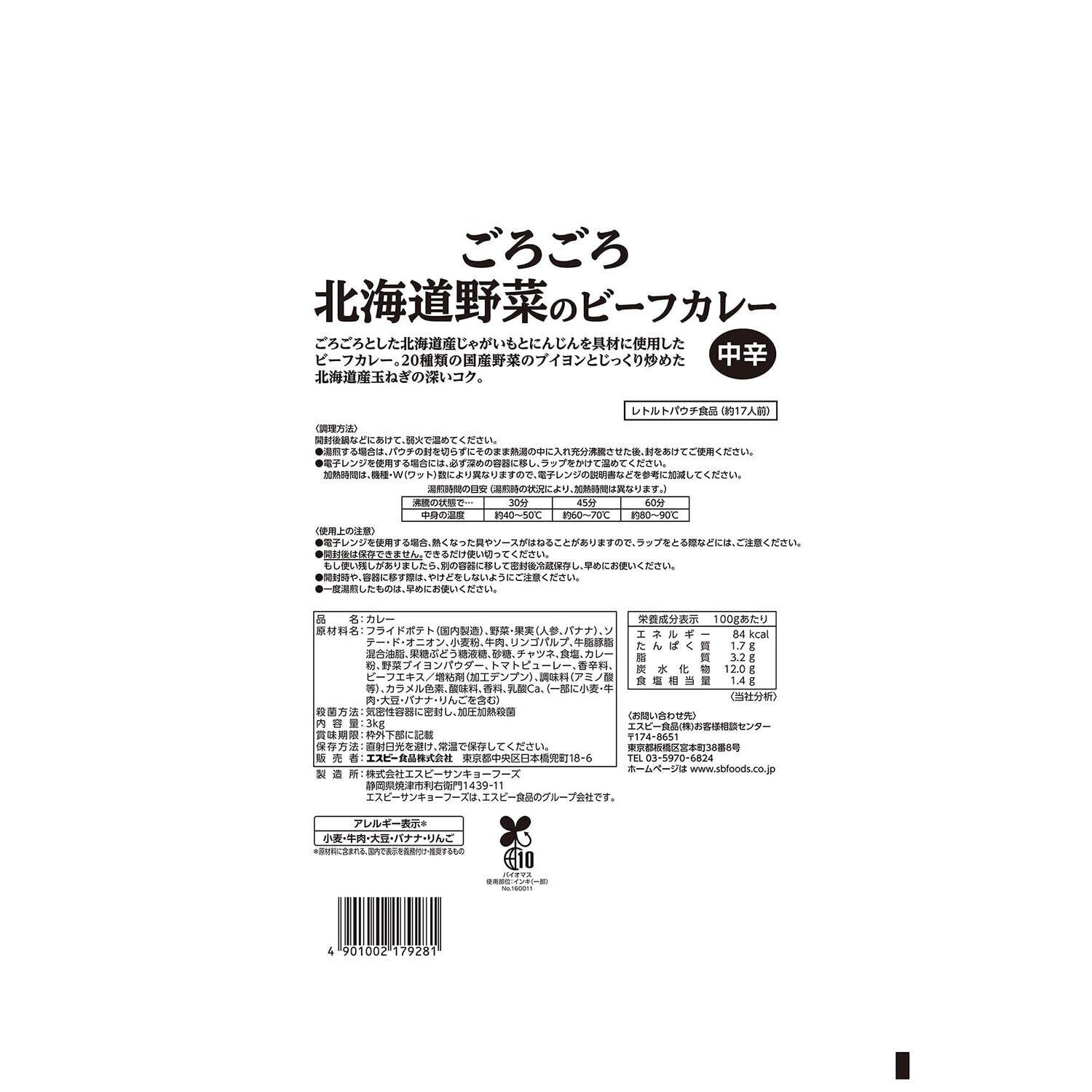S&B エスビー食品 ごろごろ北海道野菜のビーフカレー 3kg