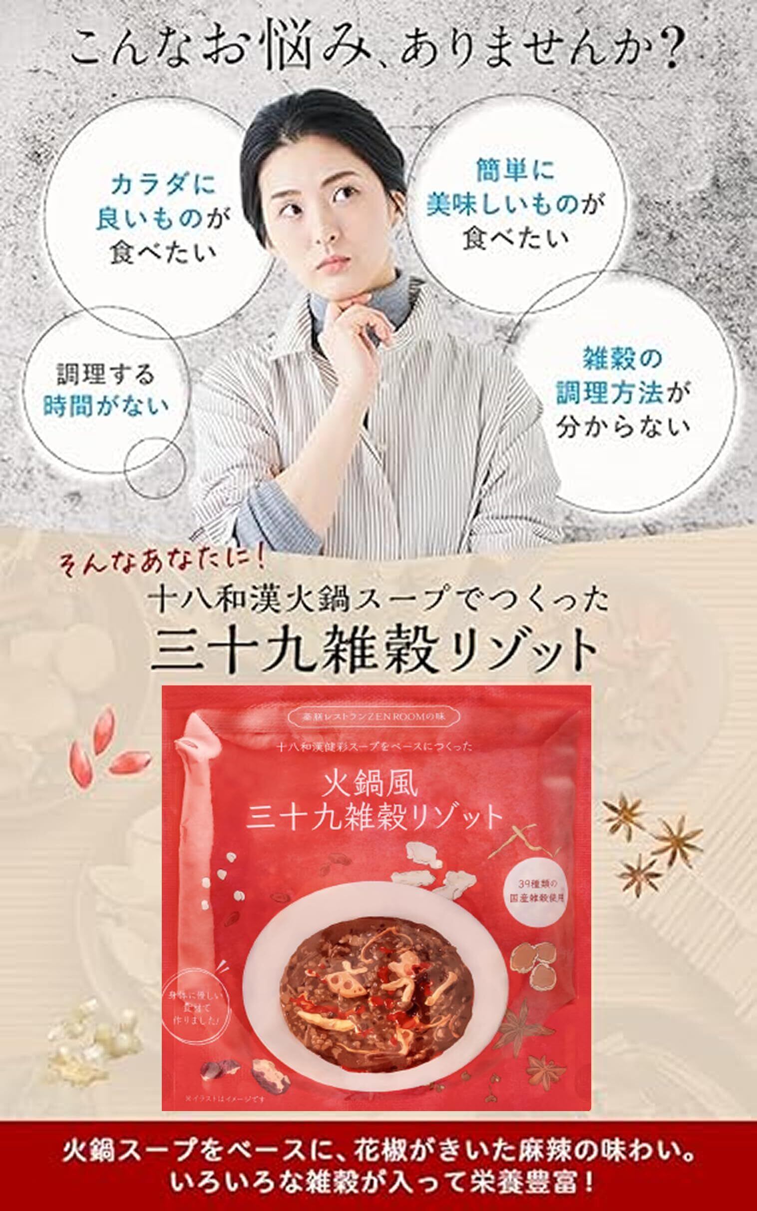 ZEN ROOM リゾット 火鍋スープ 【十八和漢火鍋スープでつくった三十九雑穀リゾット】 200g (1人前)×4袋 無添加スープ ヘルシー ゼンルーム