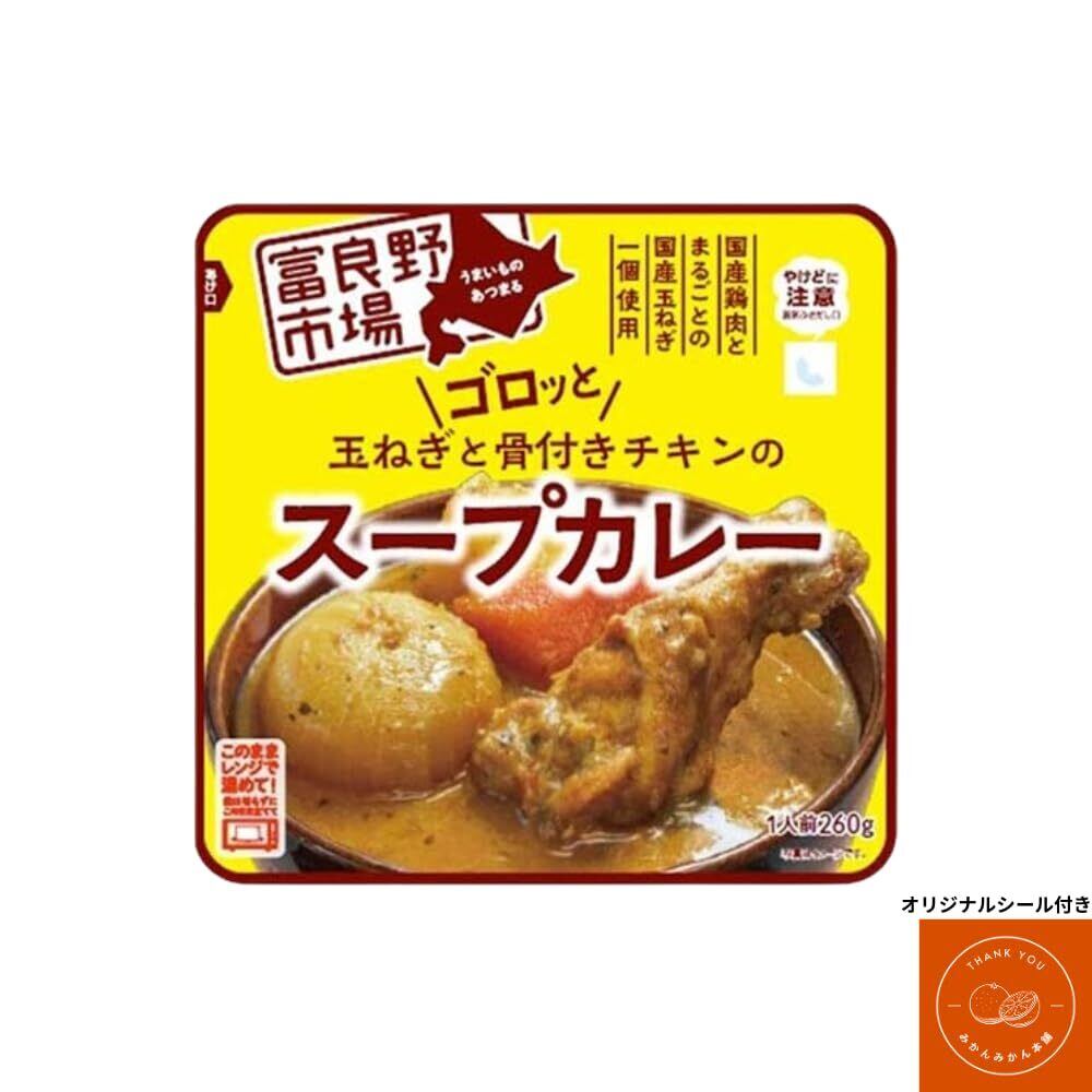 【5袋セット】富良野市場 ゴロッと玉ねぎと骨付きチキンのスープカレー 260g×5袋 オリジナルシール付き