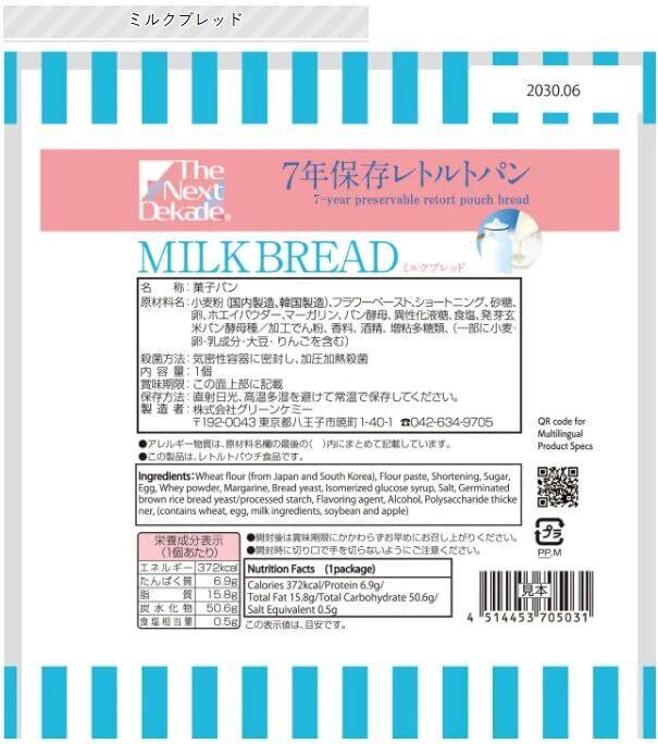 [3袋] The Next Dekade 7年保存 レトルトパン【 ミルクブレッド 】 非常食 保存食 長期保存 レトルトパウチ 備蓄 美味しい 耐温度域 : -20℃~80℃ 車載 英語表記 多言語対応 非常食 備蓄食料 災害備蓄 防災グッズ アウトドア食品 登山食 避難用品 保存食セット 緊急用食品 (3袋)