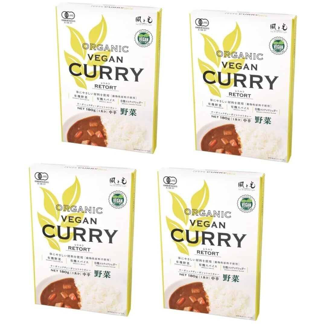 【4個セット】風と光 オーガニック ヴィーガン レトルトカレー 野菜 180g 1食分 植物性 動物性原料不使用 常温保存 湯煎OK ランチ スパイス香る