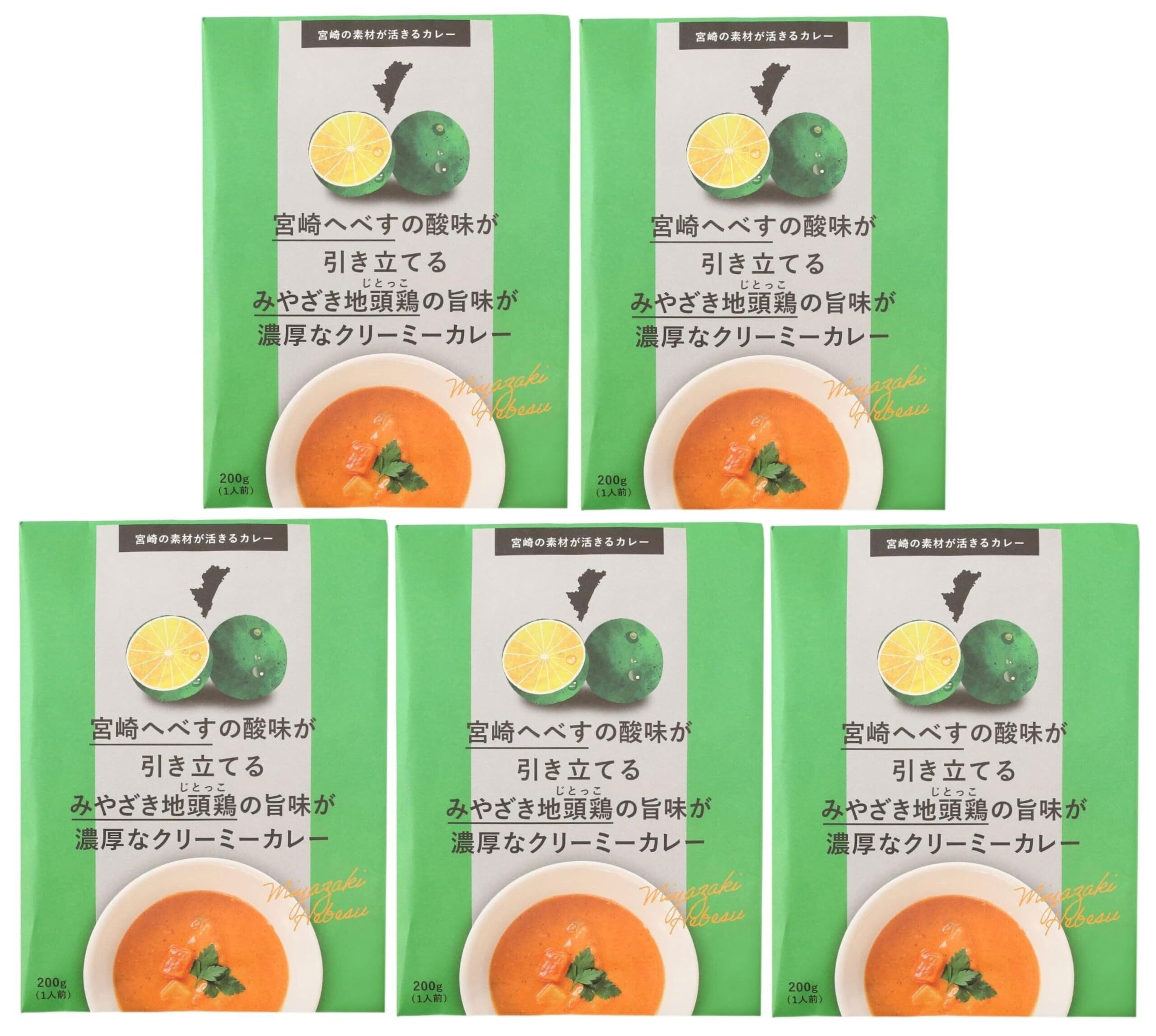 ばあちゃん本舗 宮崎へべすの酸味が引き立てるみやざき地頭鶏の旨味が濃厚なクリーミーカレー 200g×5個 レトルトカレー