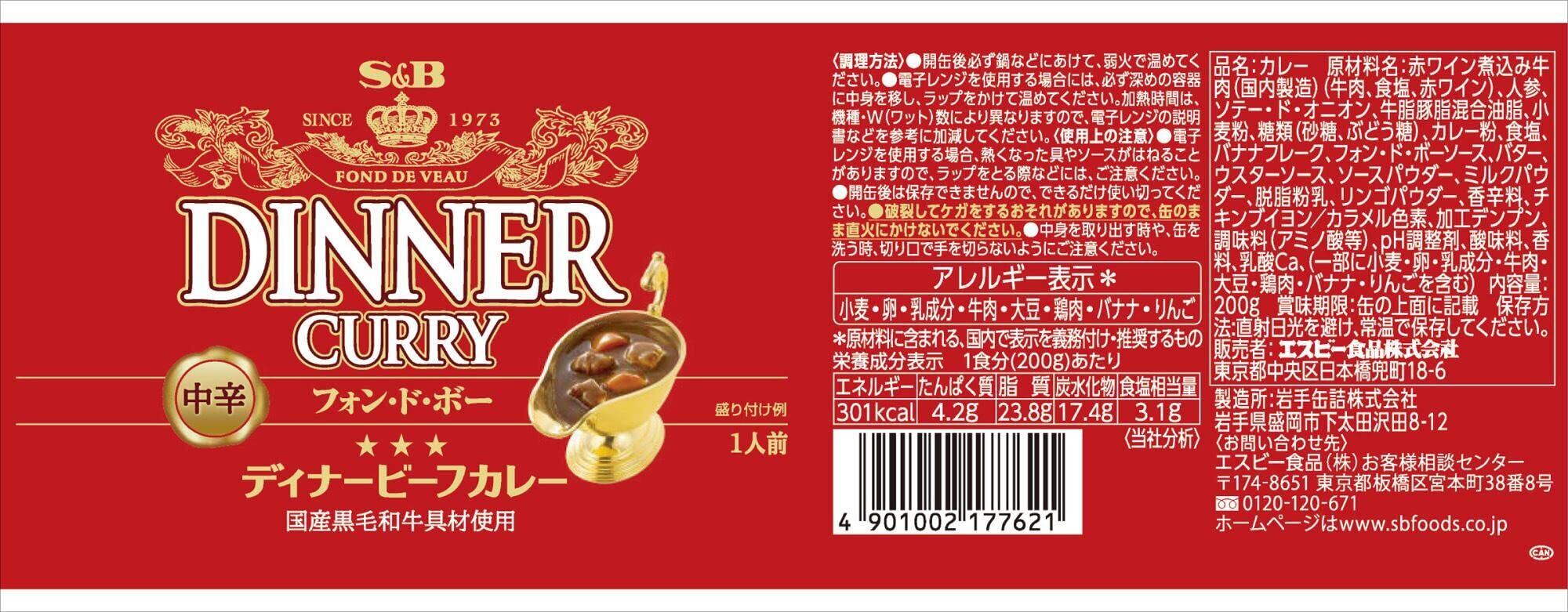 エスビー食品 ディナービーフカレー缶 中辛 200g (× 6)