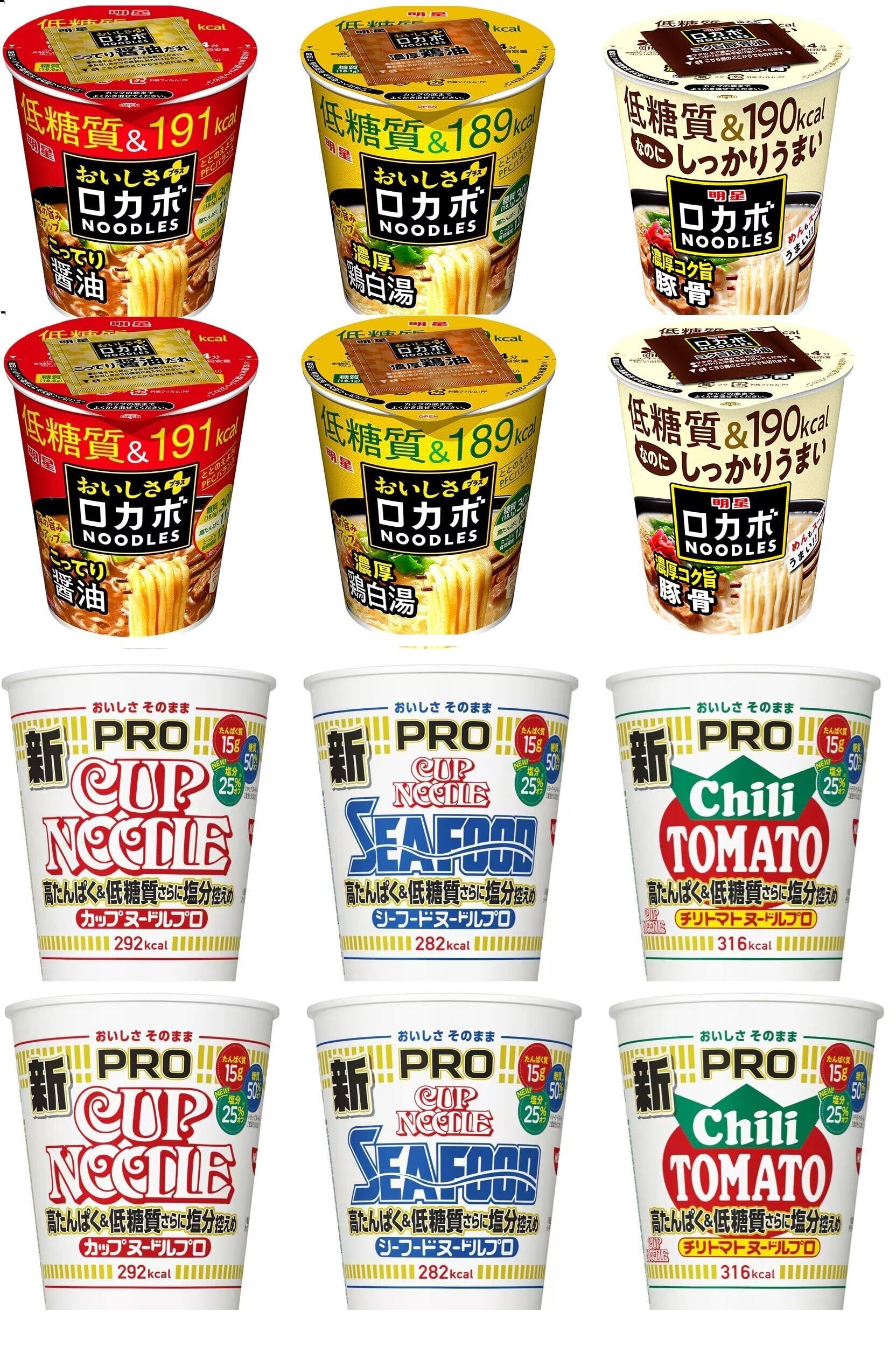 カップヌードル PRO 高たんぱく&低糖質 + 明星ロカボNOODLES【1食平均 約243kcal】6種類x各2個 計12食
