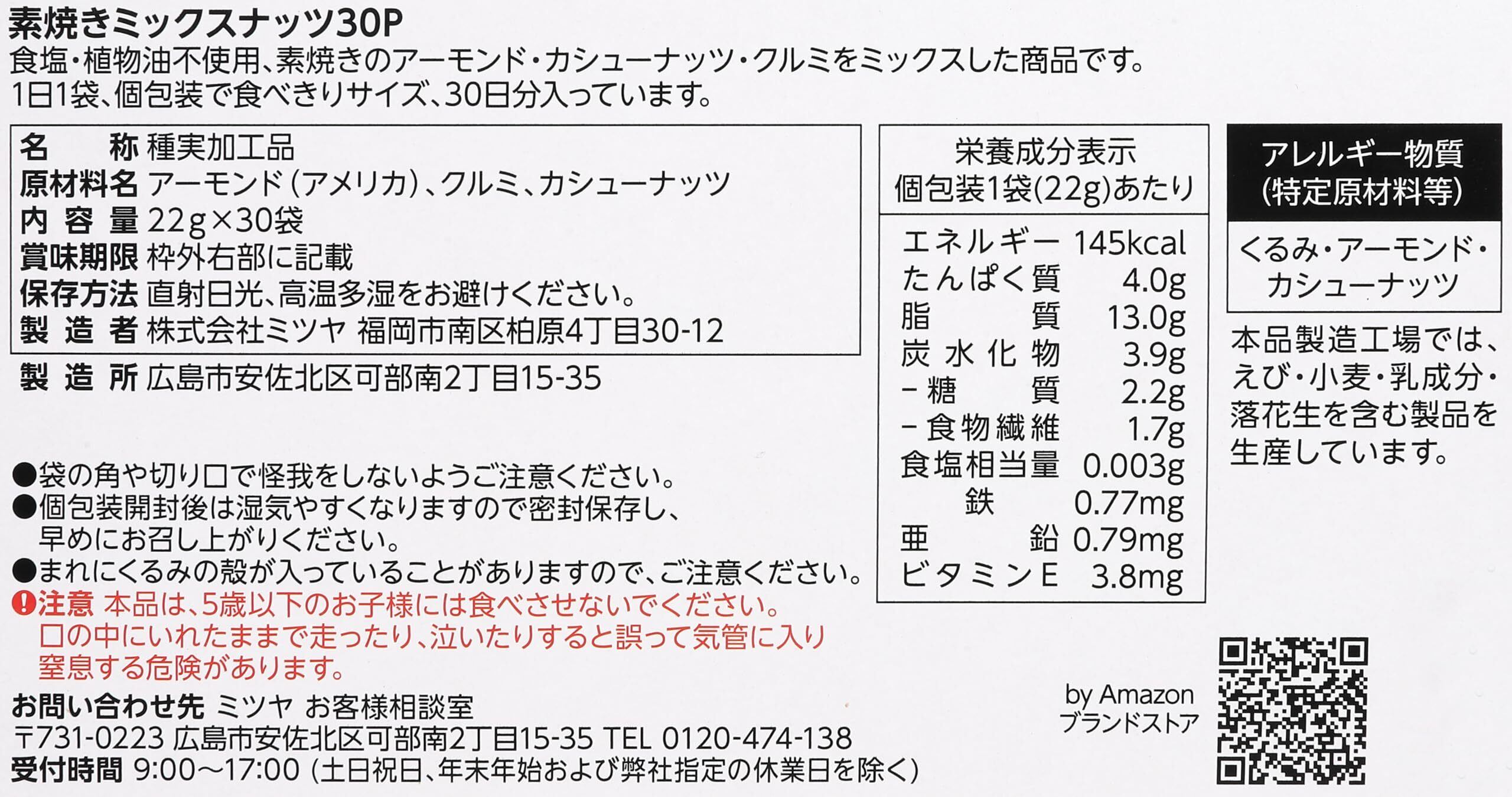 by 素焼きミックスナッツ アーモンド カシューナッツ クルミ 22g×30袋 個包装