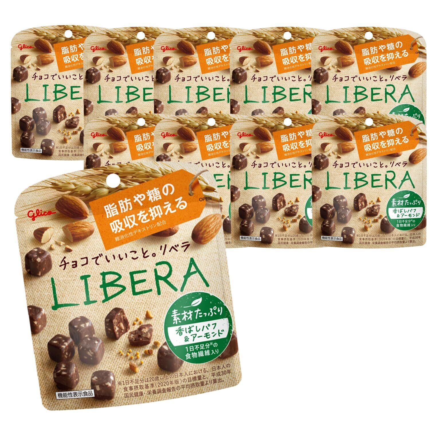 LIBERA(リベラ) 素材たっぷり 香ばしパフ&アーモンド チョコレート 45g×10個脂肪や糖の吸収を抑える 機能性表示食品 江崎グリコ glico
