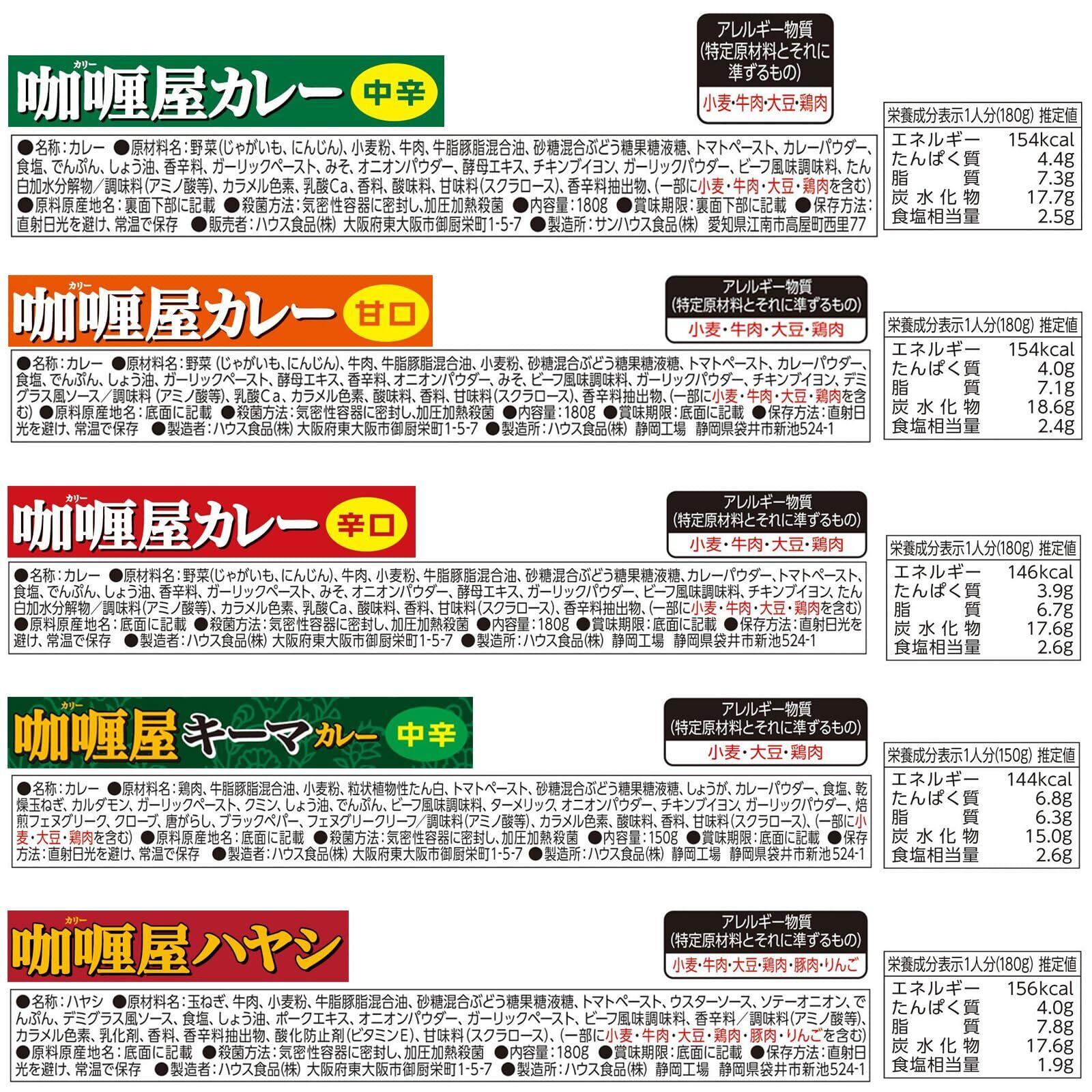 カリー屋 ハウス 5種 10食セット(甘口/中辛/辛口/キーマ/ハヤシ)【セット買い】【レンジ調理対応】【レトルト食品】【非常食】【 限定】