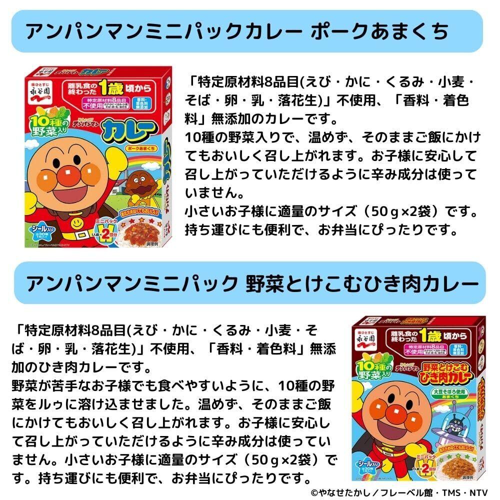 1歳頃から アンパンマン レトルトセット 5種類, 各3個 計15点セット 永谷園 ポークあまくちカレー 野菜とけこむひき肉カレー ポークハヤシ 中華丼 ミートソース レトルト食品 備蓄品 常温 栄養 かんたん調理 非常食 防災食 (5種類, 各3個 計15点セット)