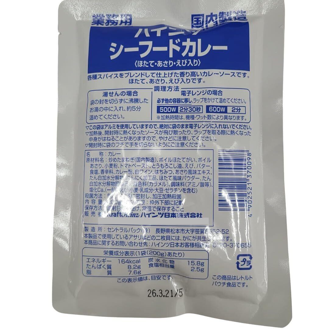 ハインツ(HEINZ)シーフードカレー 国産ホタテ入り 業務用 レトルトカレー中辛 200g ×5袋