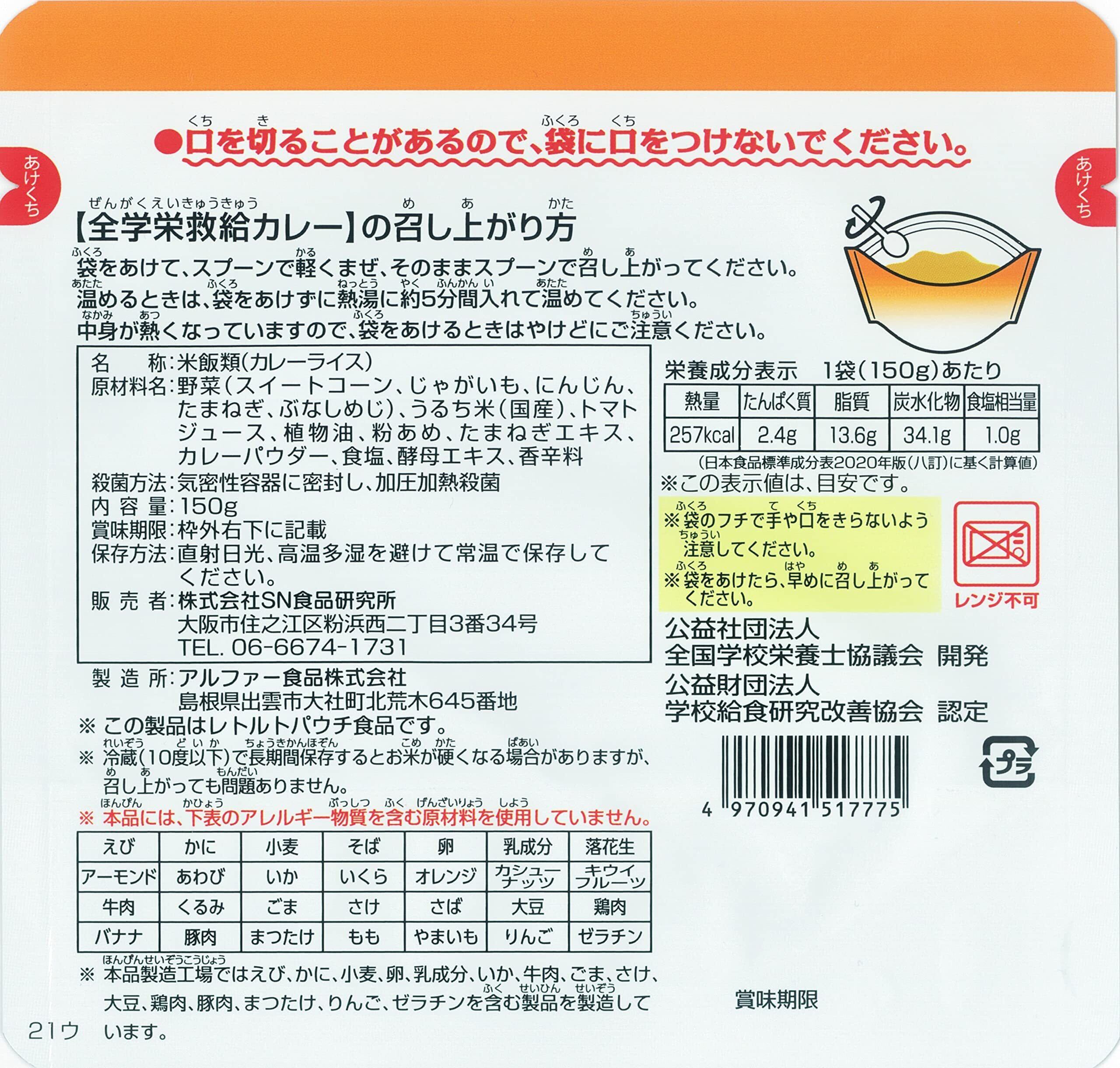 全学栄 救給カレー150g×5食(非常食・保存食・常備食・長期保存・ごはん入り・即食)