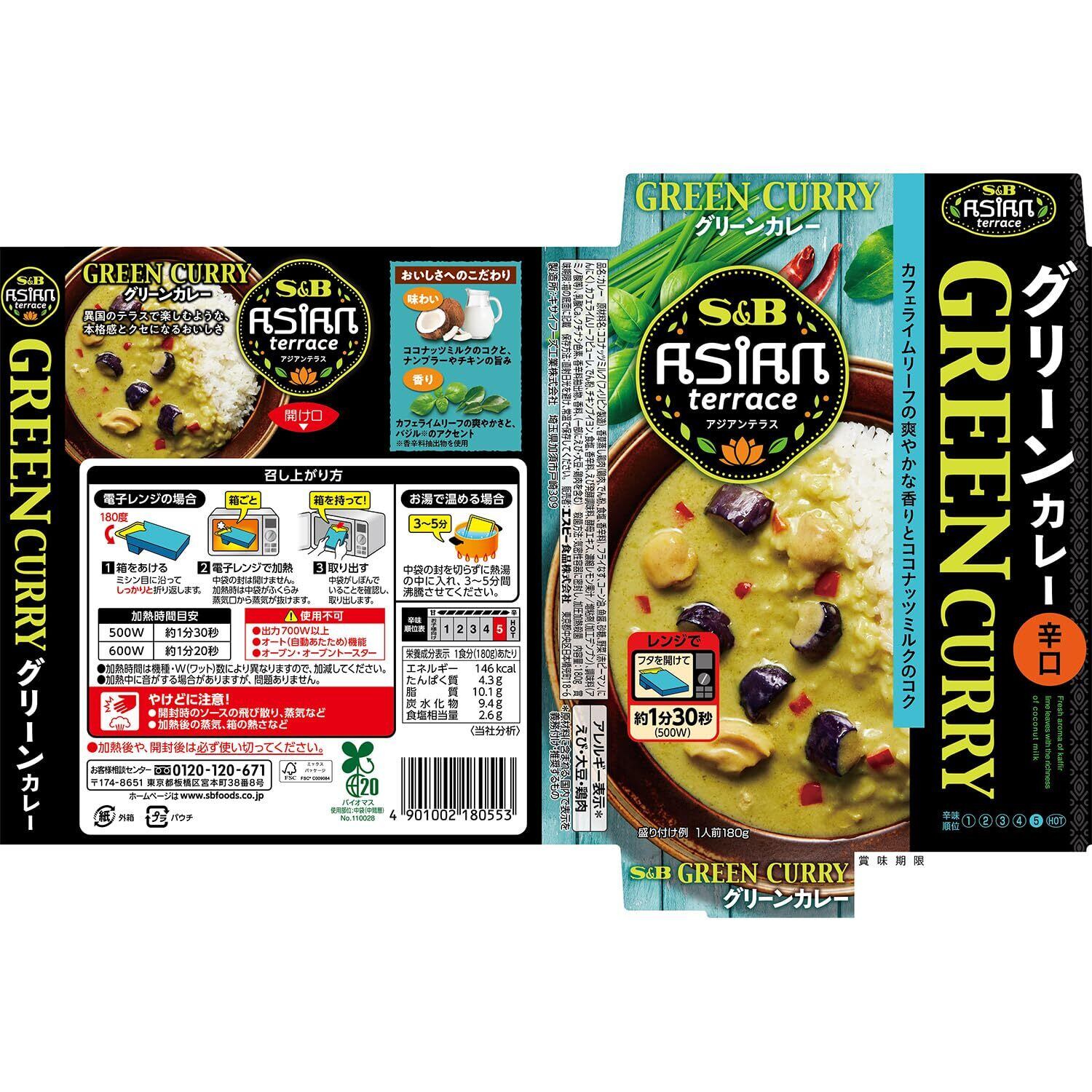 S&B エスビー食品 アジアンテラス グリーンカレー 辛口 180g×6個