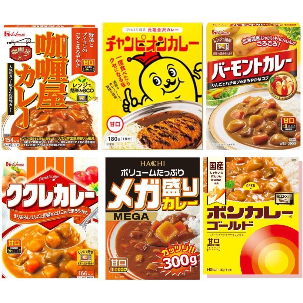 カレー〈甘口シリーズ〉6種食べ比べセット おまけ付き ボンカレー、バーモントカレーなど