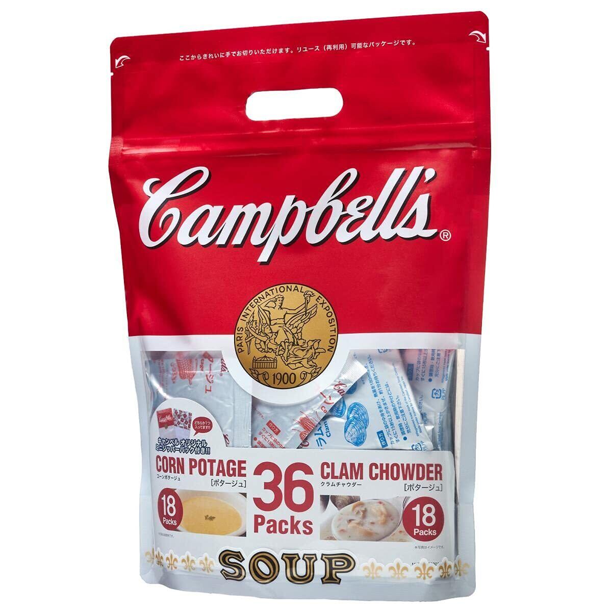 Campbells キャンベル コーンポタージュ18袋&クラムチャウダー18袋 合計36パック ボリュームパック 36個アソート