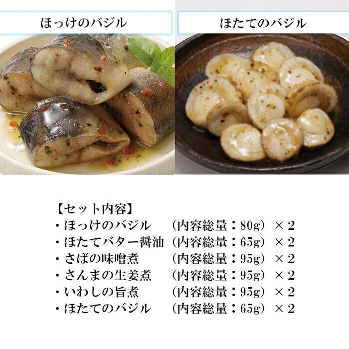 兼由 レトルト食品 6種類 詰め合わせ 12食セット さばの味噌煮 いわしの旨煮 さんまの生姜煮 ほたてのバター醤油 ほたてのバジル ほっけのバジル 各2食ずつ レトルト 保存食 非常食 | kki2nd