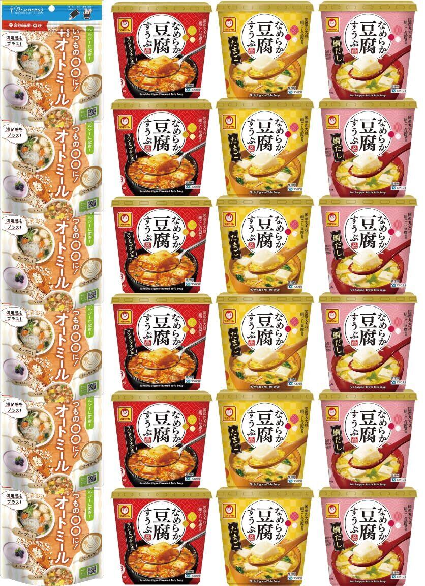 カチプラ スープにちょいたし軽食セット(マルちゃん なめらか豆腐すうぷ 鯛だし/スンドゥブ/たまご各6個&日食オートミール 70g×6個)