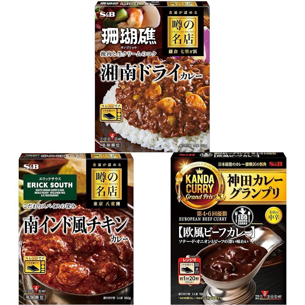 【セット買い】【レンジ対応】エスビー食品 噂の名店 湘南ドライカレー 150g ×5個 + 【レンジ対応】エスビー食品 噂の名店 南インド風チキンカレー 180g ×5個 + エスビー食品 神田カレーグランプリ 100時間カレーB&R 欧風ビーフカレー お店の中辛 180g×5個