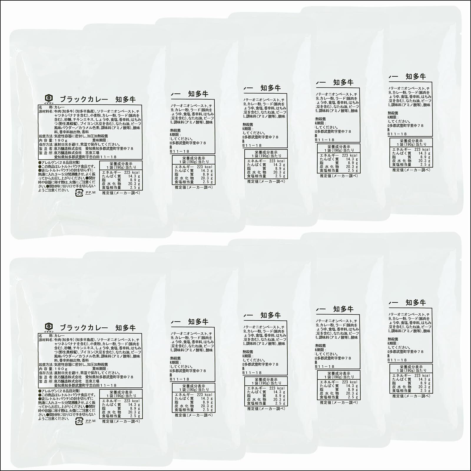 泉万醸造|ブラックカレー知多牛 190g スパイスをきかせた中辛口 黒 高級 レトルト (190g×10個, ブラックカレー)