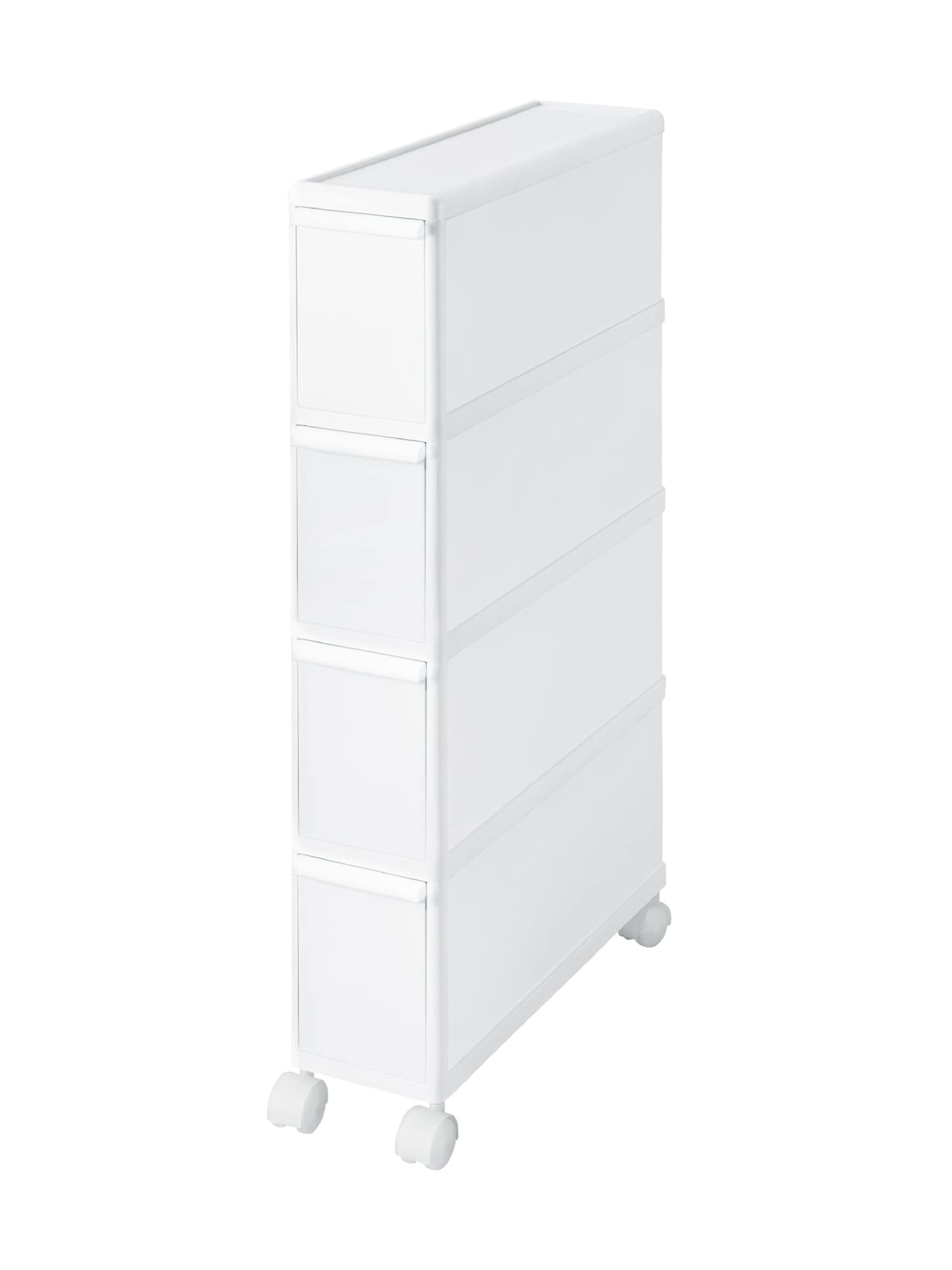 ライクイット (like-it) キッチン収納 すき間 引出し スーパースリム 4段 キャスター付 約幅14x奥46.5x高83cm オールホワイト 日本製 FTS-4 隠す収納 幅14㎝ デッドスペース収納 すき間を活用 レトルト食品収納 レトルトカレー