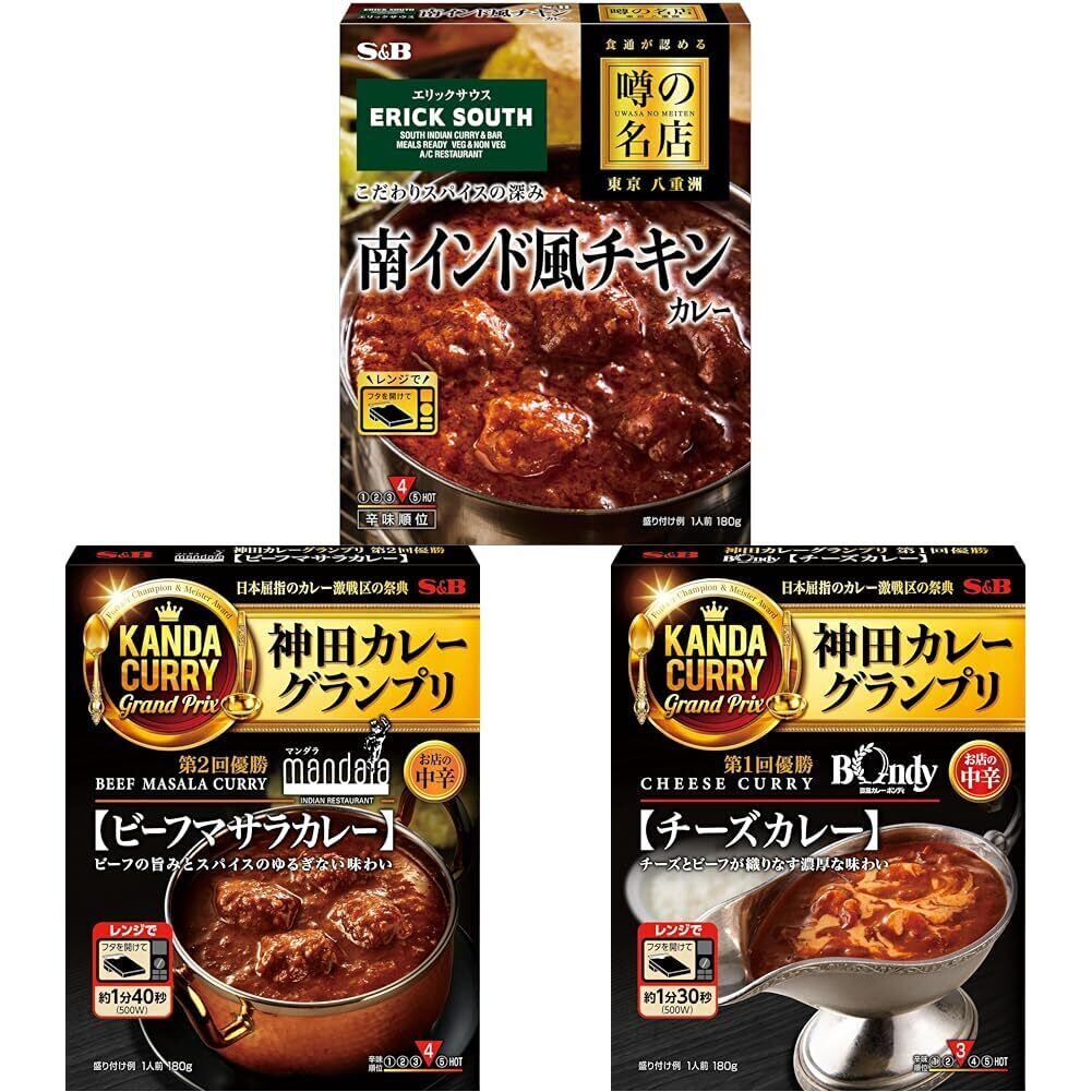 【セット買い】【レンジ対応】エスビー食品 噂の名店 南インド風チキンカレー 180g ×5個 + 神田カレー エスビー食品 マンダラビーフマサラカレー 180g×5箱 + エスビー食品 神田カレーグランプリ 欧風カレーボンディ チーズカレー お店の中辛 180g×5個 ボックス