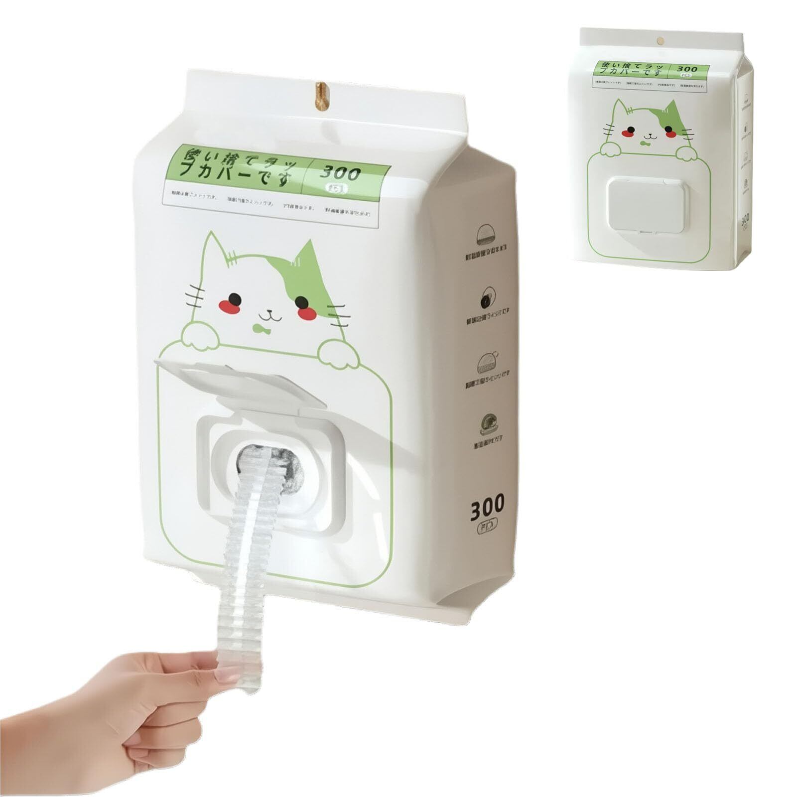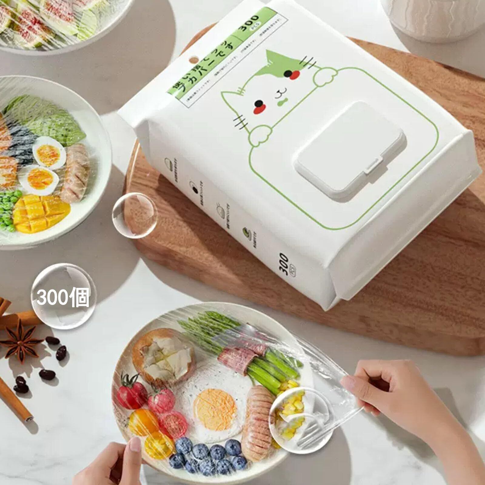 シリコンゴム付き 食品用ラップ 300枚 大容量 かぶせるだけ ストレッチラップ 保存カバー 冷凍対応 耐熱100℃ 耐冷-30℃ 使い捨て 清潔収納 キッチン収納 引き出し式 毎日使える 使い捨て