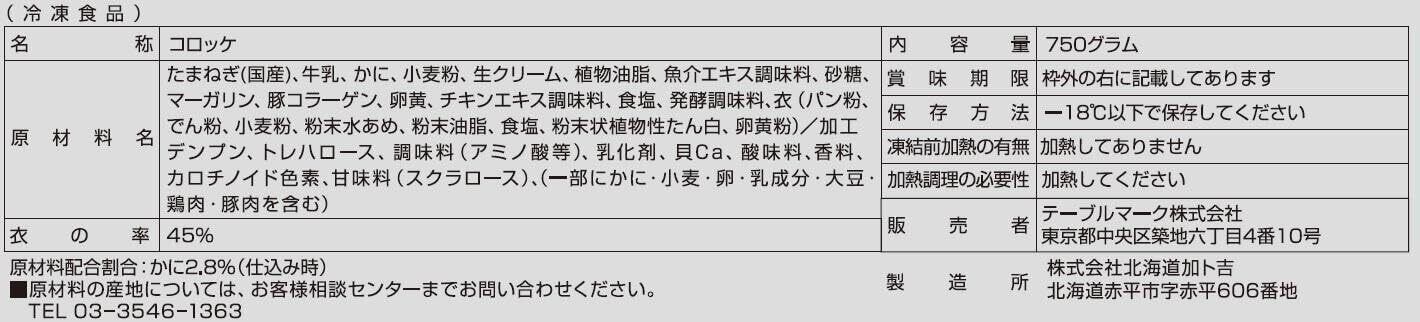 [冷凍]テーブルマーク 業務用 MDとろける濃厚クリームのコロッケ(国産紅ずわいがに入り) 75g×10個 ×2袋
