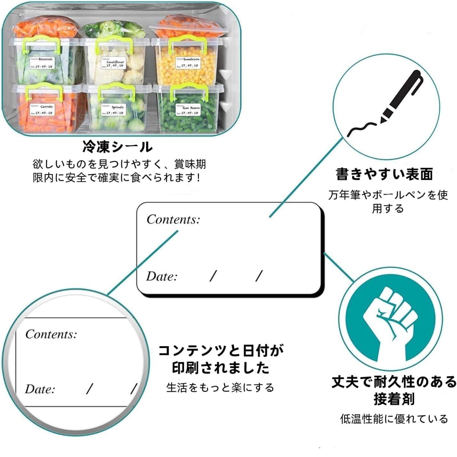 lulubelle 50枚500個 冷凍シール 冷凍食品在庫ラベル 冷凍合成紙ラベル 日付シール (カラフル)