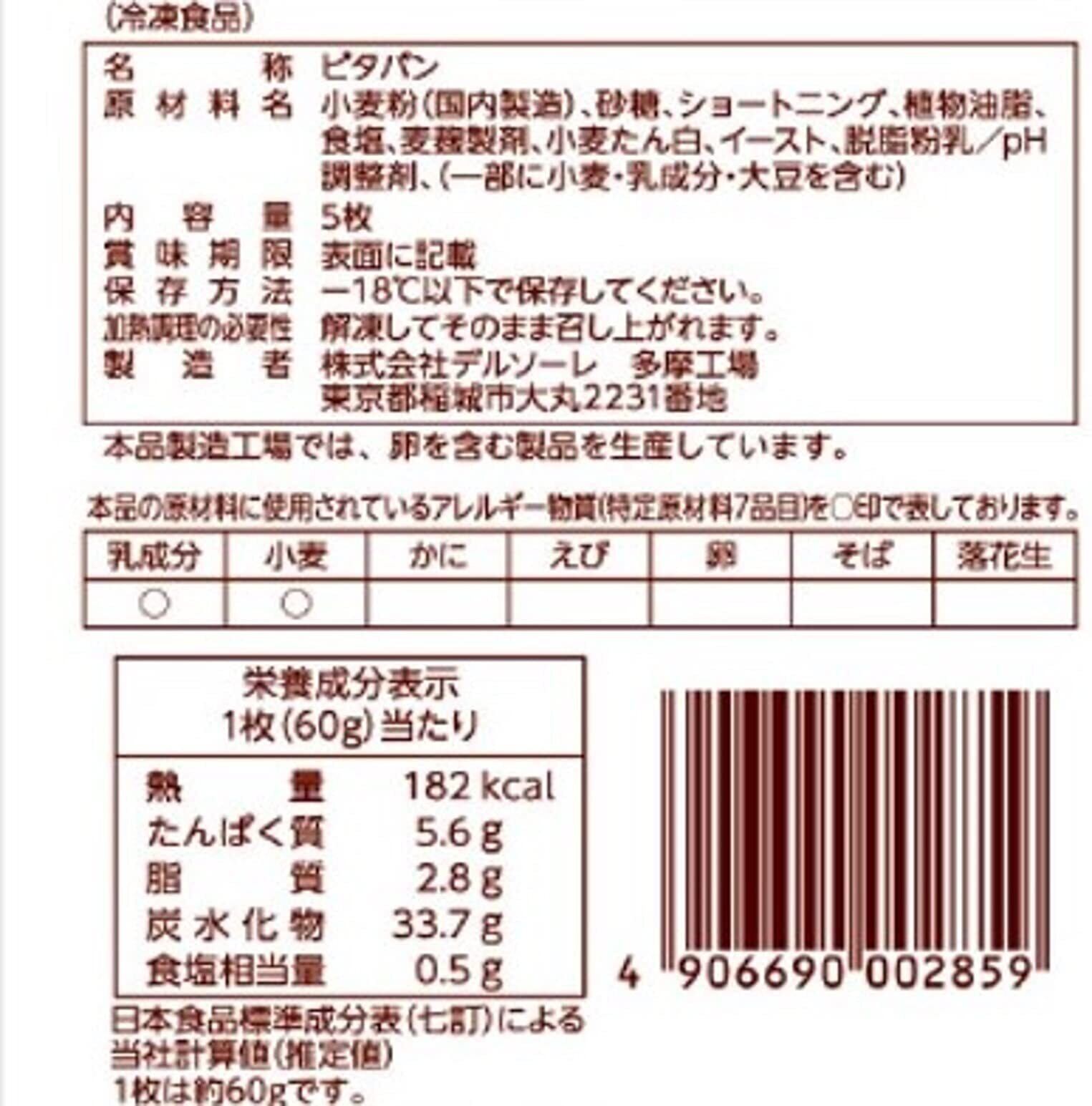 [冷凍] デルソーレ ピタパン 60G 5枚×2