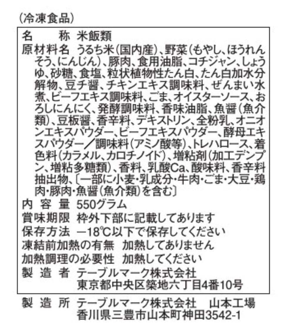 [冷凍] テーブルマーク ビビンバ 550g×3袋