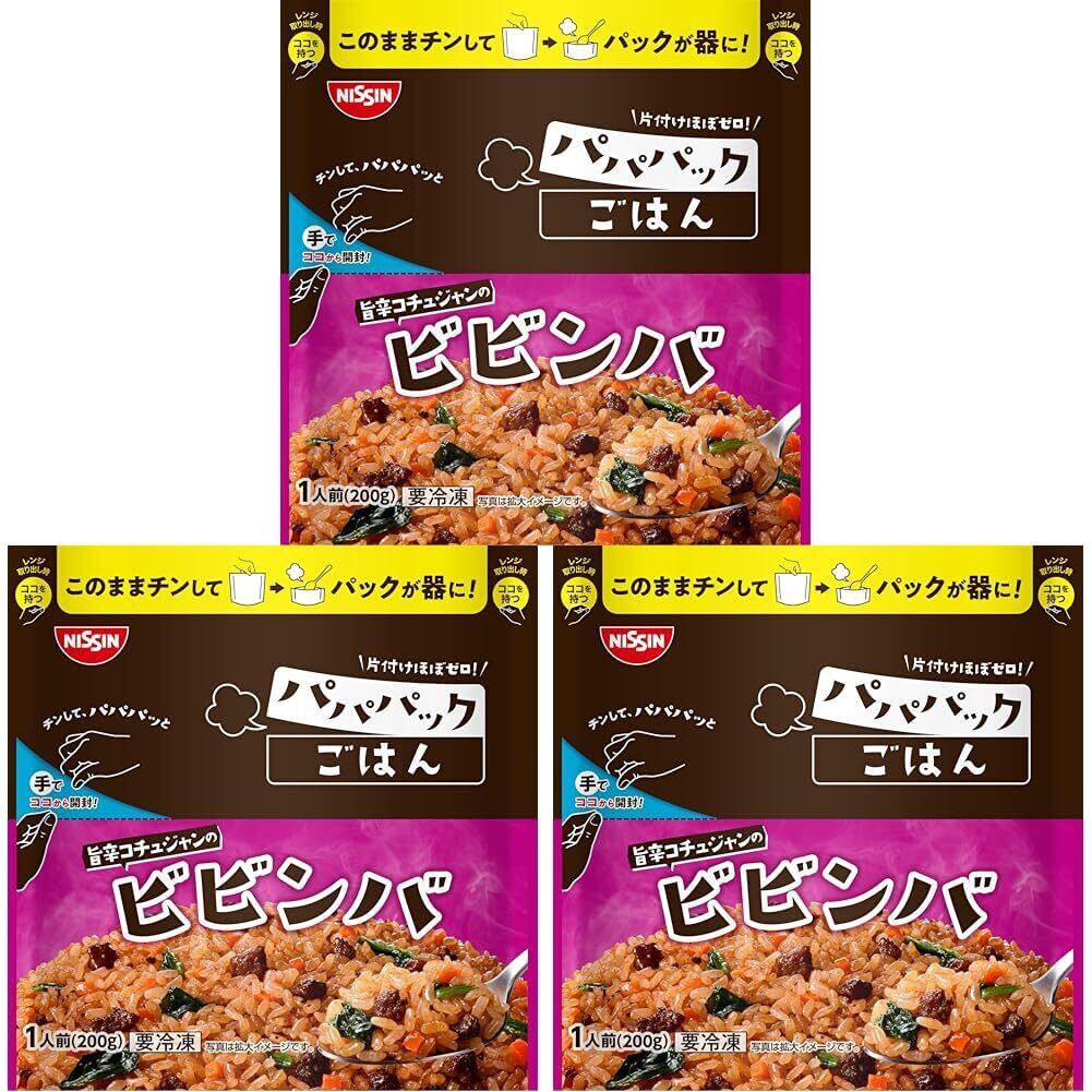 [冷凍]日清食品 日清 パパパックごはん 旨辛コチュジャンのビビンバ 200g (× 3)