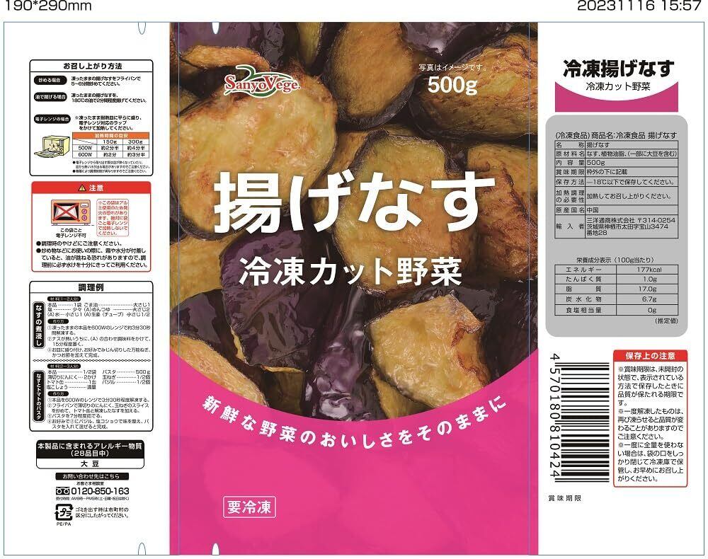 [冷凍] SanyoVage 揚げなす 500g×4袋