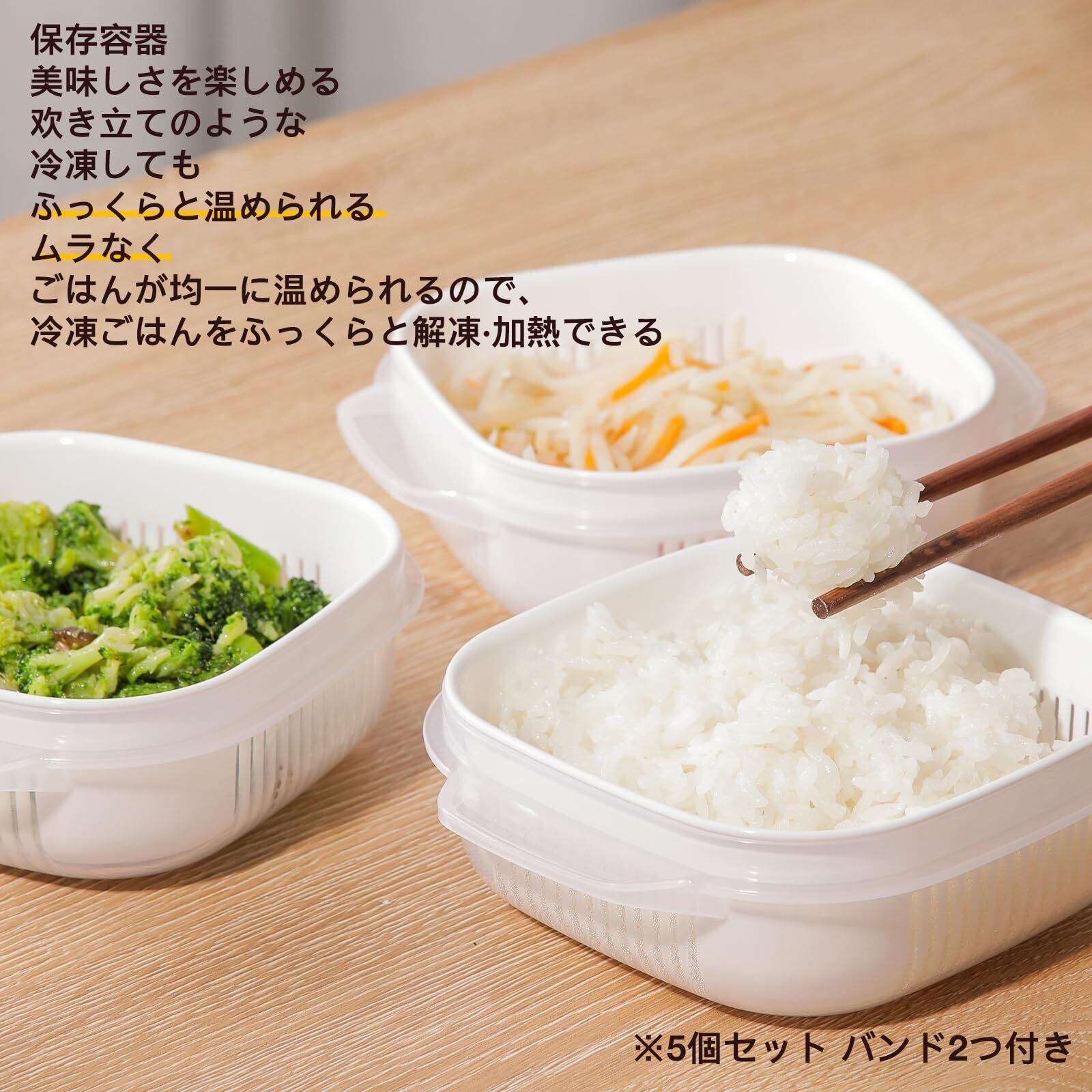 冷凍ごはん容器 (食品衛生法適合)(6個入り / 電子レンジ/食洗機対応) ご飯 冷凍ご飯容器 保存容器 ごはん冷凍保存容器 BPAフリ,バンド3つ付き