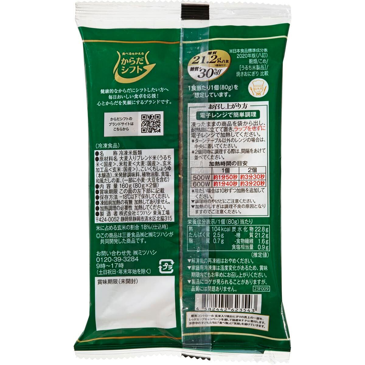 [冷凍] からだシフト 糖質コントロール 玄米入り焼おにぎり 2個入 ×8袋 朝ごはん 昼ご飯 電子レンジ調理
