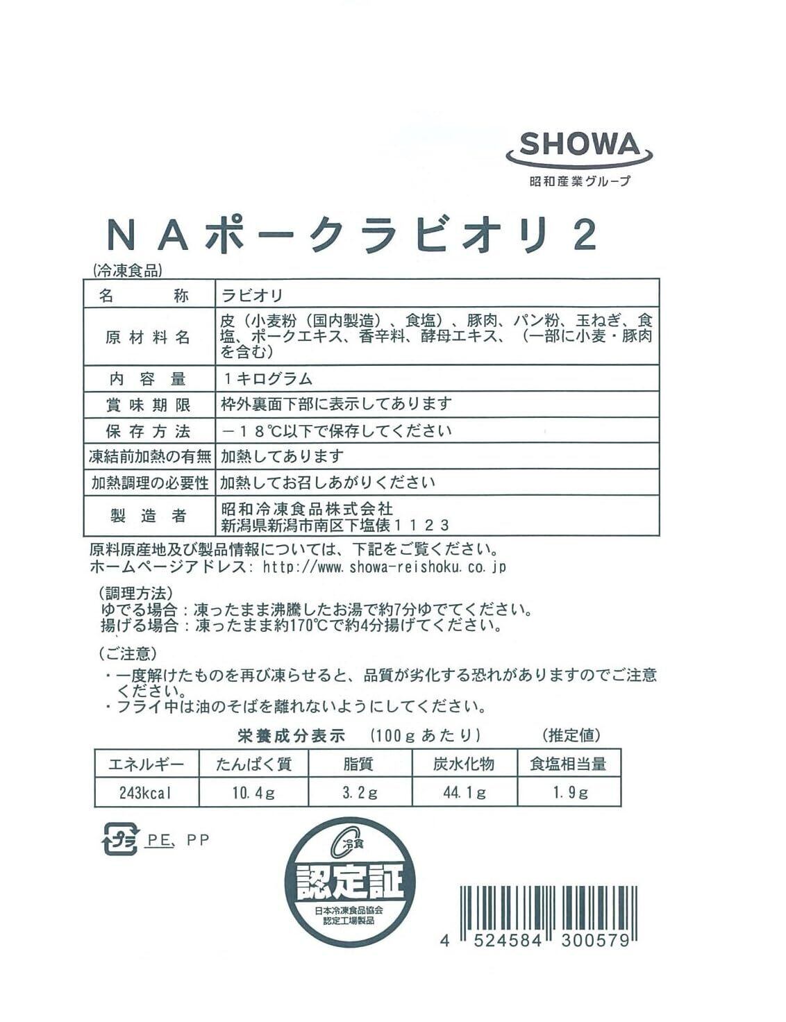 [冷凍]昭和産業 NAポークラビオリ うまみ調味料、卵、着色料、不使用