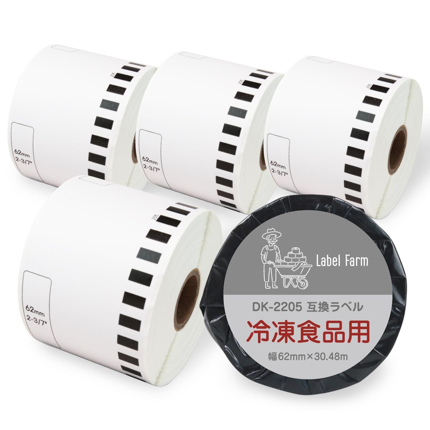 【ラベルファーム】冷凍食品用DK-2205 ブラザー 互換ラベル長尺紙テープ 幅62mm x 30.48m巻 QL-700 / QL-800 / QL-820NWB 等に (5ロール)