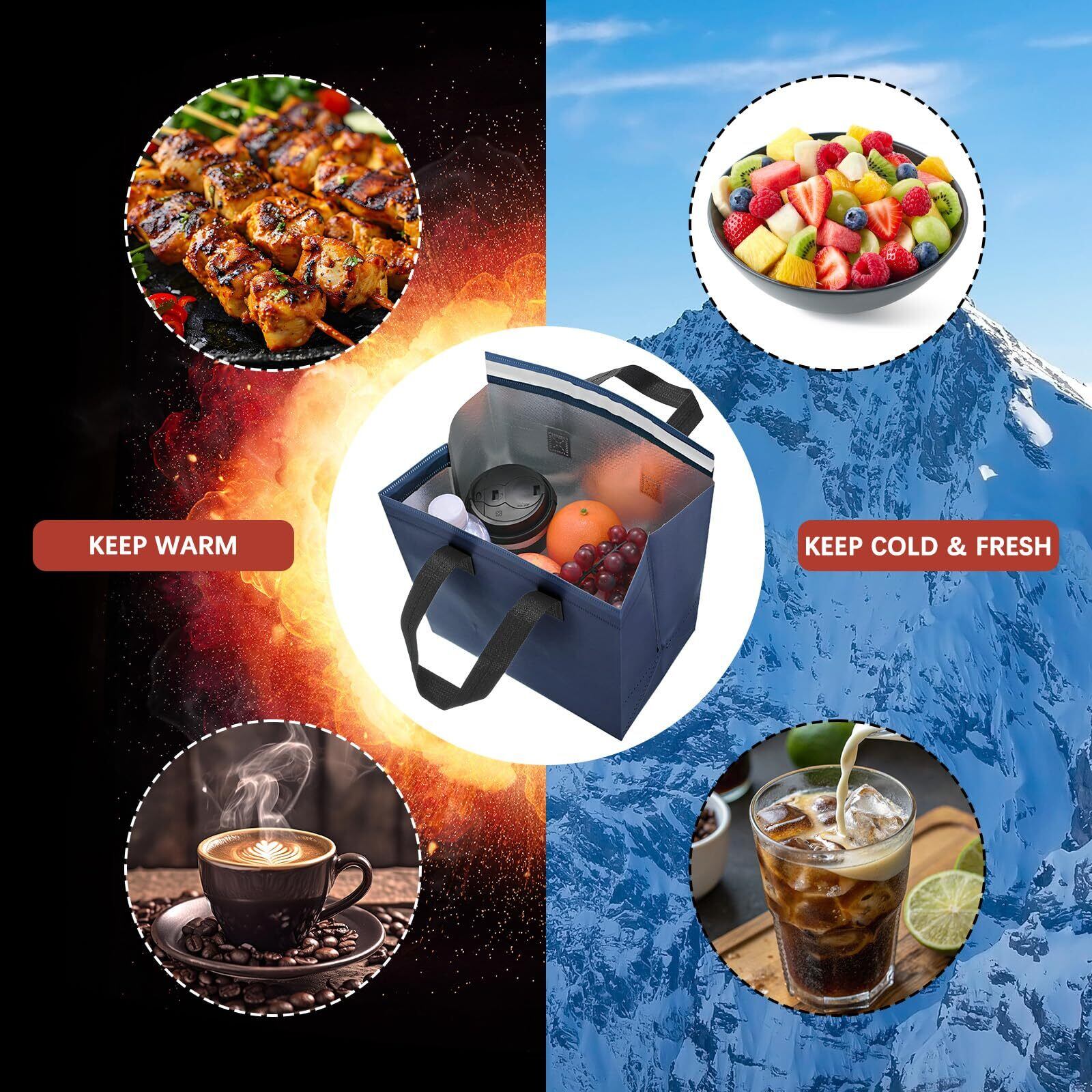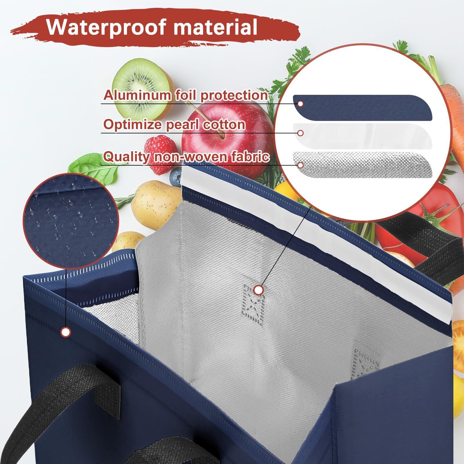 保温テイクアウトバッグ[20枚入] - 業務用保温食品保冷バッグ 熱冷食品冷凍はいそう・生鮮食品保存用 - [ネイビーブルー-9.4インチ]