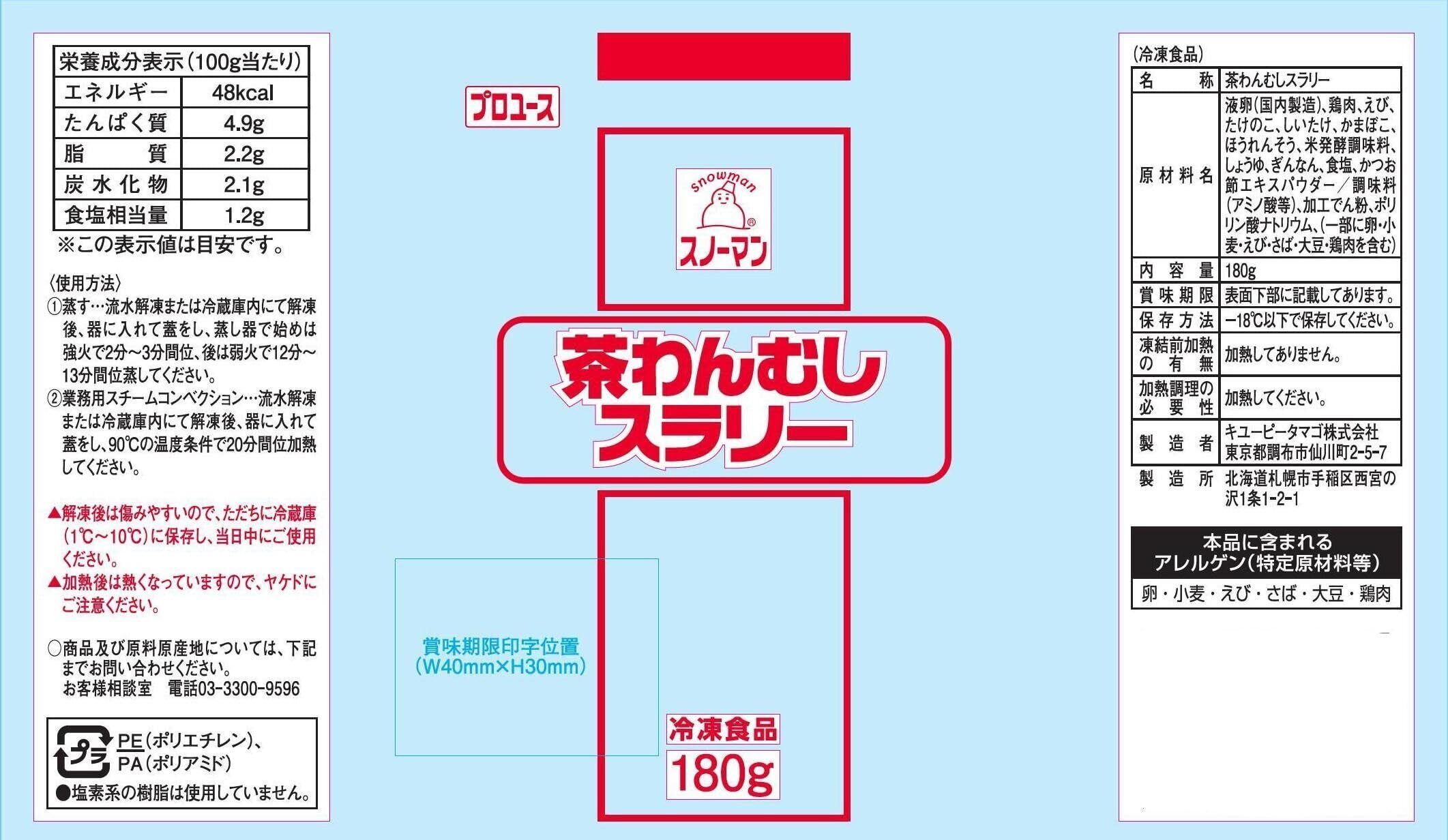 [冷凍] スノーマン 茶わんむしスラリー 180g ×10個 キユーピー
