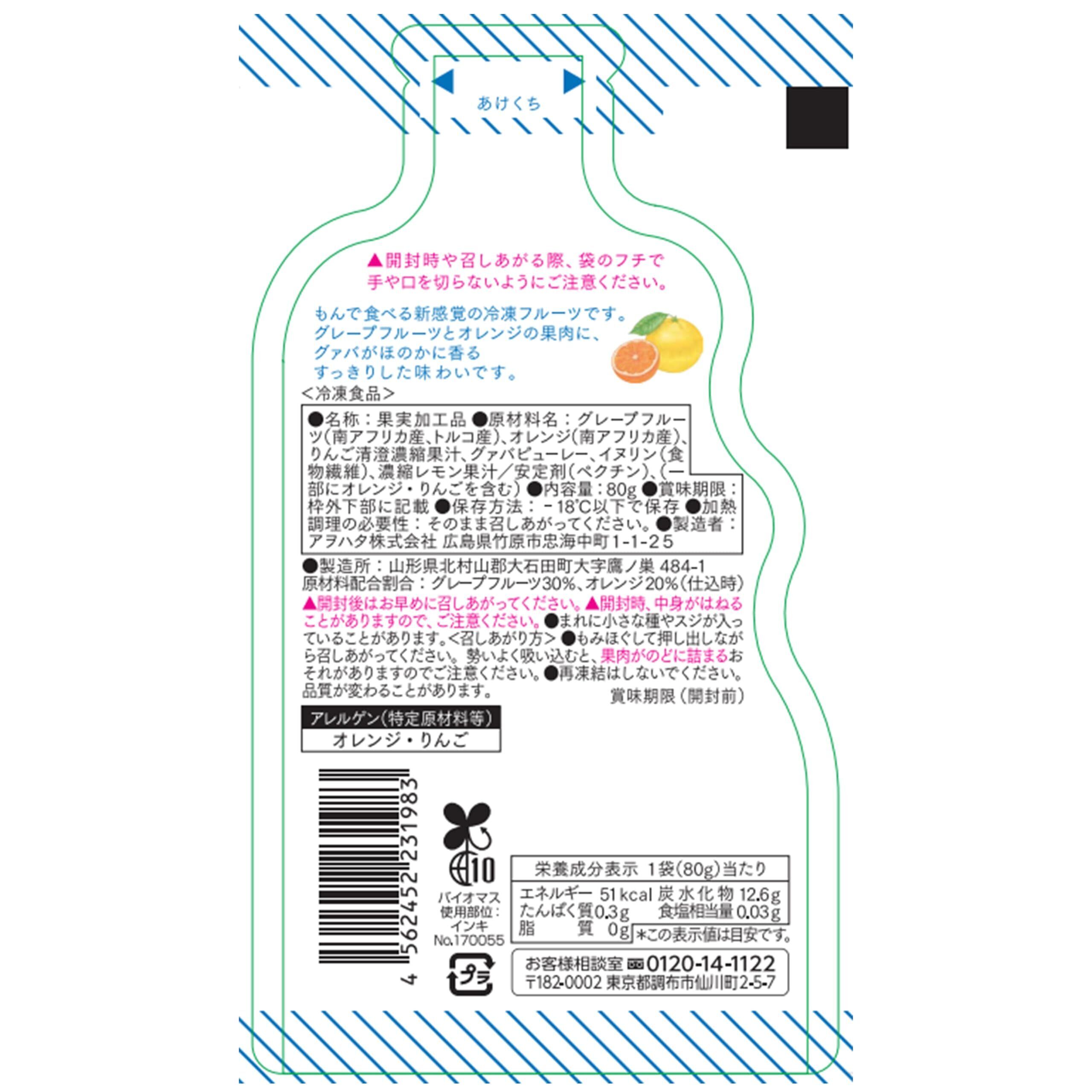 [冷凍] キユーピー まるかじゅり グレープフルーツ&オレンジ 80g ×10袋 アヲハタ 冷凍フルーツ