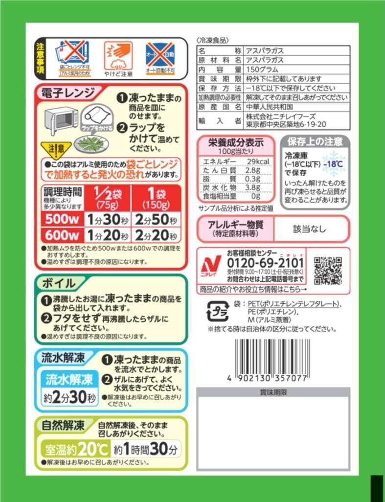 [冷凍] ニチレイ そのまま使えるグリーンアスパラ 150g×10袋
