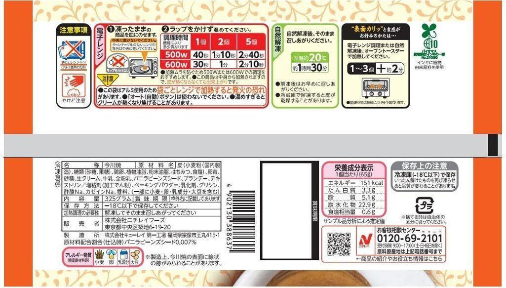 [冷凍] ニチレイ 今川焼 (カスタードクリーム) 5個325g×6袋