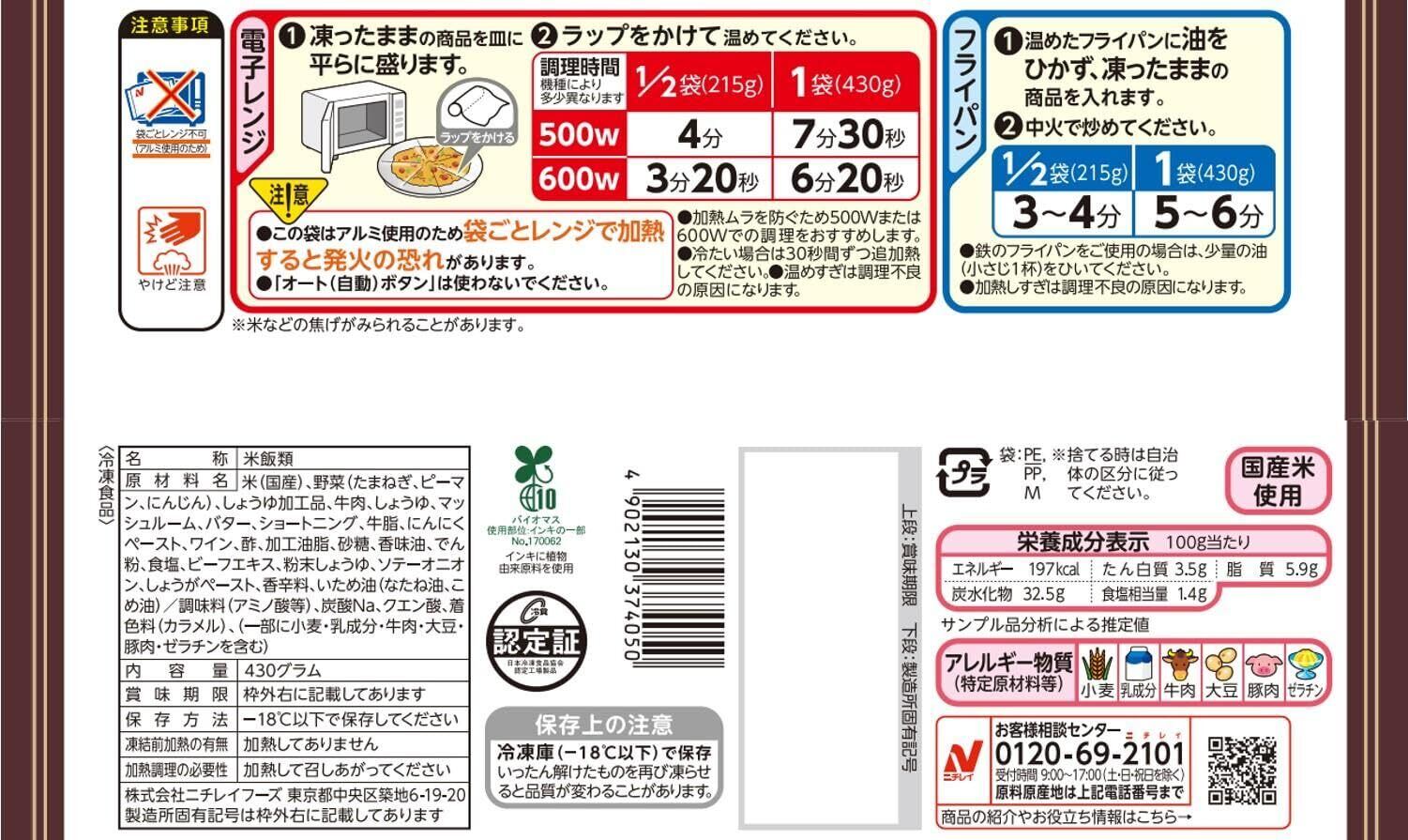 [冷凍] ニチレイ たいめいけんサイコロステーキピラフ 430g×4袋 (× 2)