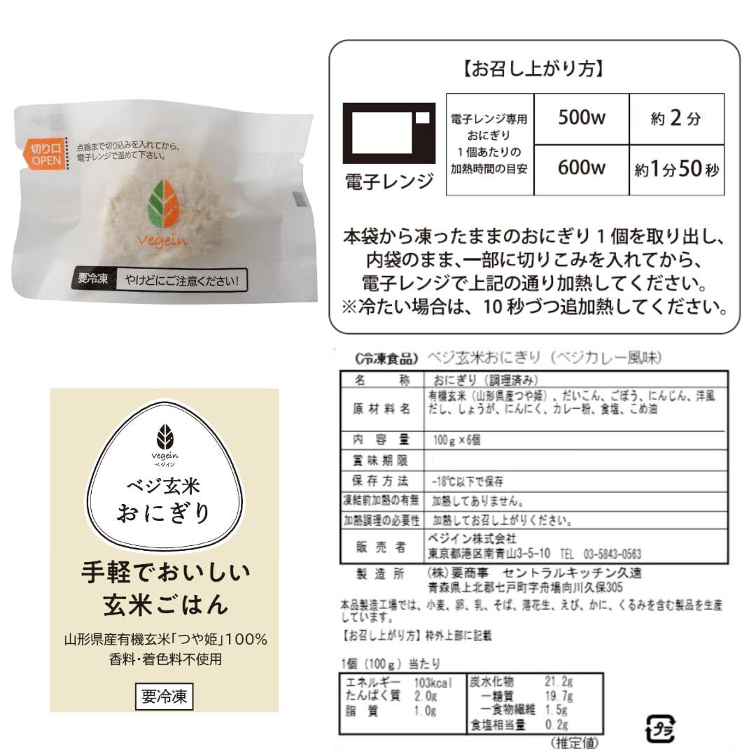 【有機玄米 冷凍おにぎり やさしいカレー味】有機JAS玄米使用 玄米おにぎり 山形つや姫使用 新生活応援おにぎり 個包装 自宅用 会社用 無農薬 国産 管理栄養士監修 完全栄養食 ファスティング 食欲不振 100g×6個入×2袋 香りで満たす ベジイン 春の玄米おにぎり