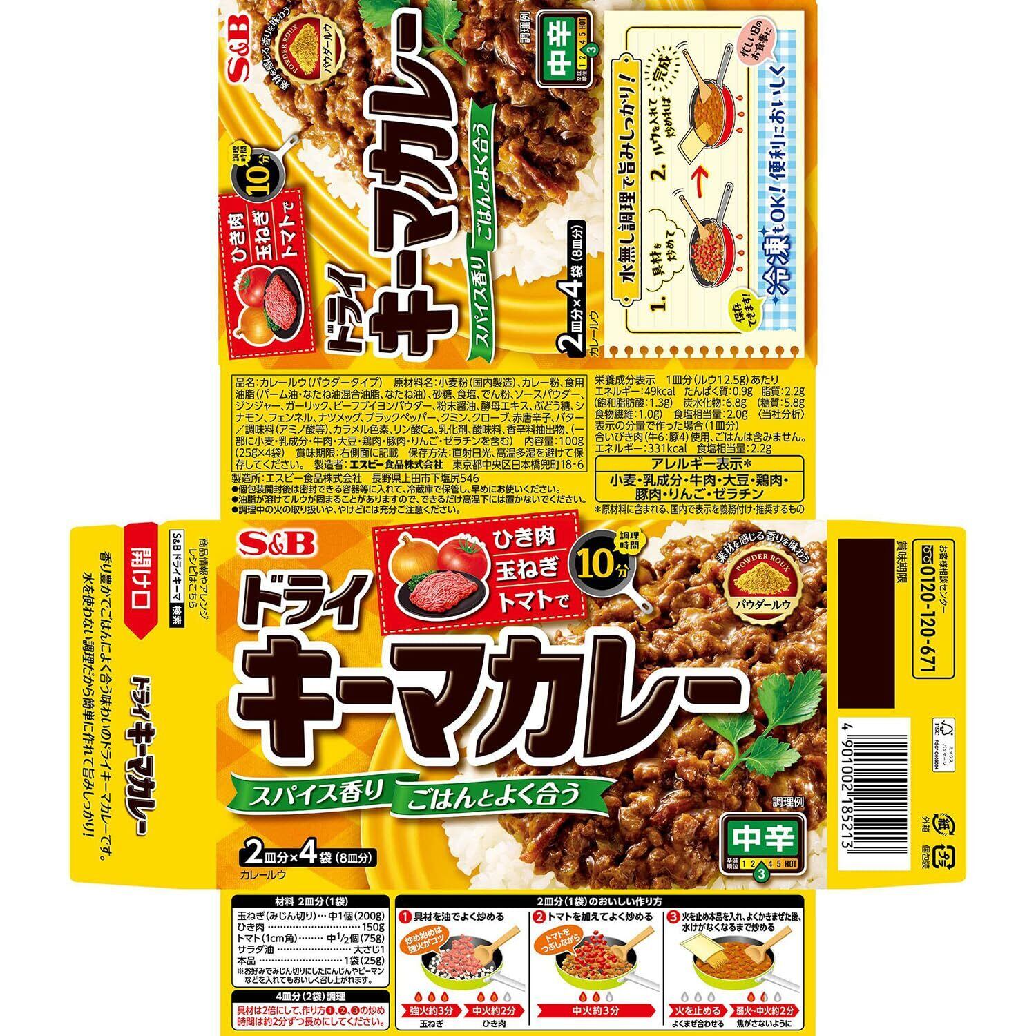 S&B エスビー食品 ドライキーマカレー 中辛 100g ×3個 【時短調理】 (× 5)